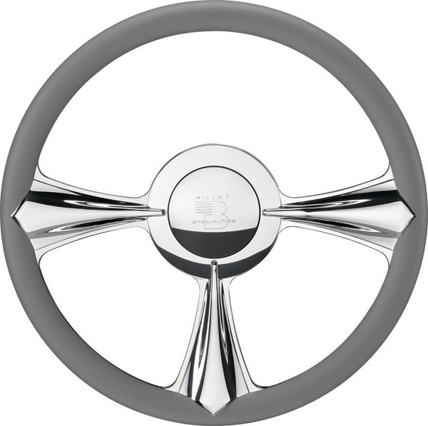 Stiletto Style Steering Wheel - 14" Polished Aluminum 3 Spoke Wheel with Milled Finger Notches.