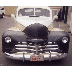 Attaches underneath the hood by means of elastic straps with S hooks. Long straps hook to back/near hood hinge. Other small straps hook by hood latch. In some cases, 2 straps will hook together. Can use in conjunction with bra.