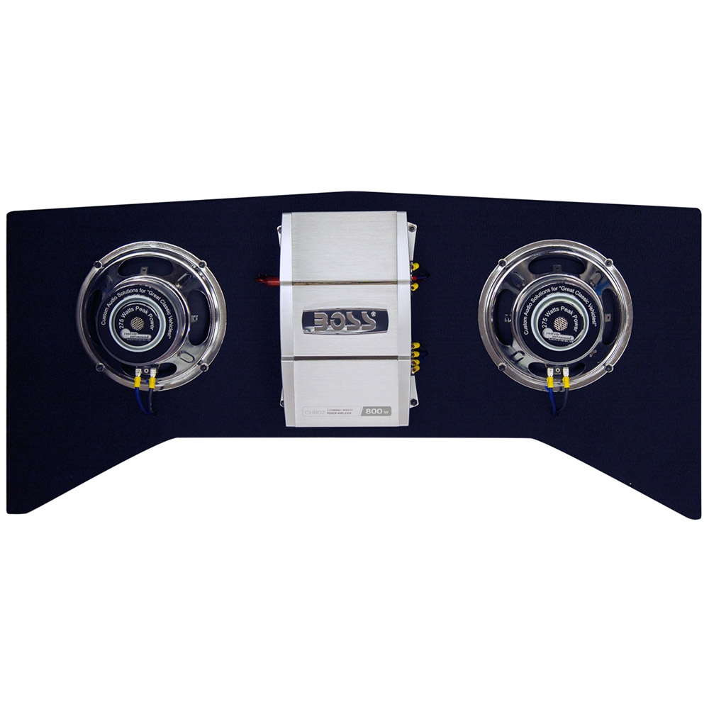 Add some bottom end power to your system with the BACKSEAT DRIVER from Custom Autosound. The BACKSEAT DRIVER comes equipped with two Custom Autosound 8” subwoofers and the Boss 800 watt amp. It mounts to the back of the rear seat from the trunk. All cables and wires needed are included for a quick, easy installation.