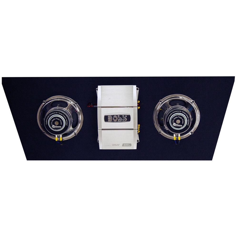 Add some bottom end power to your system with the BACKSEAT DRIVER from Custom Autosound. The BACKSEAT DRIVER comes equipped with two Custom Autosound 8” subwoofers and the Boss 800 watt amp. It mounts to the back of the rear seat from the trunk. All cables and wires needed are included for a quick, easy installation.