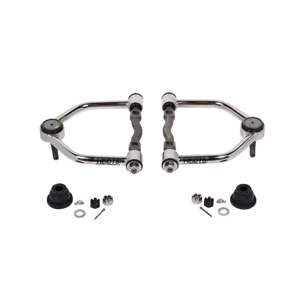 This is a Heidt's stainless steel tubular upper A-Arms are the ultimate in looks. These are a direct replacement for stock upper A-Arms, they fit Heidt's and most other IFS kits. Arms arrive fully assembled and ready to install including ball joints, bushings and cross shafts.
