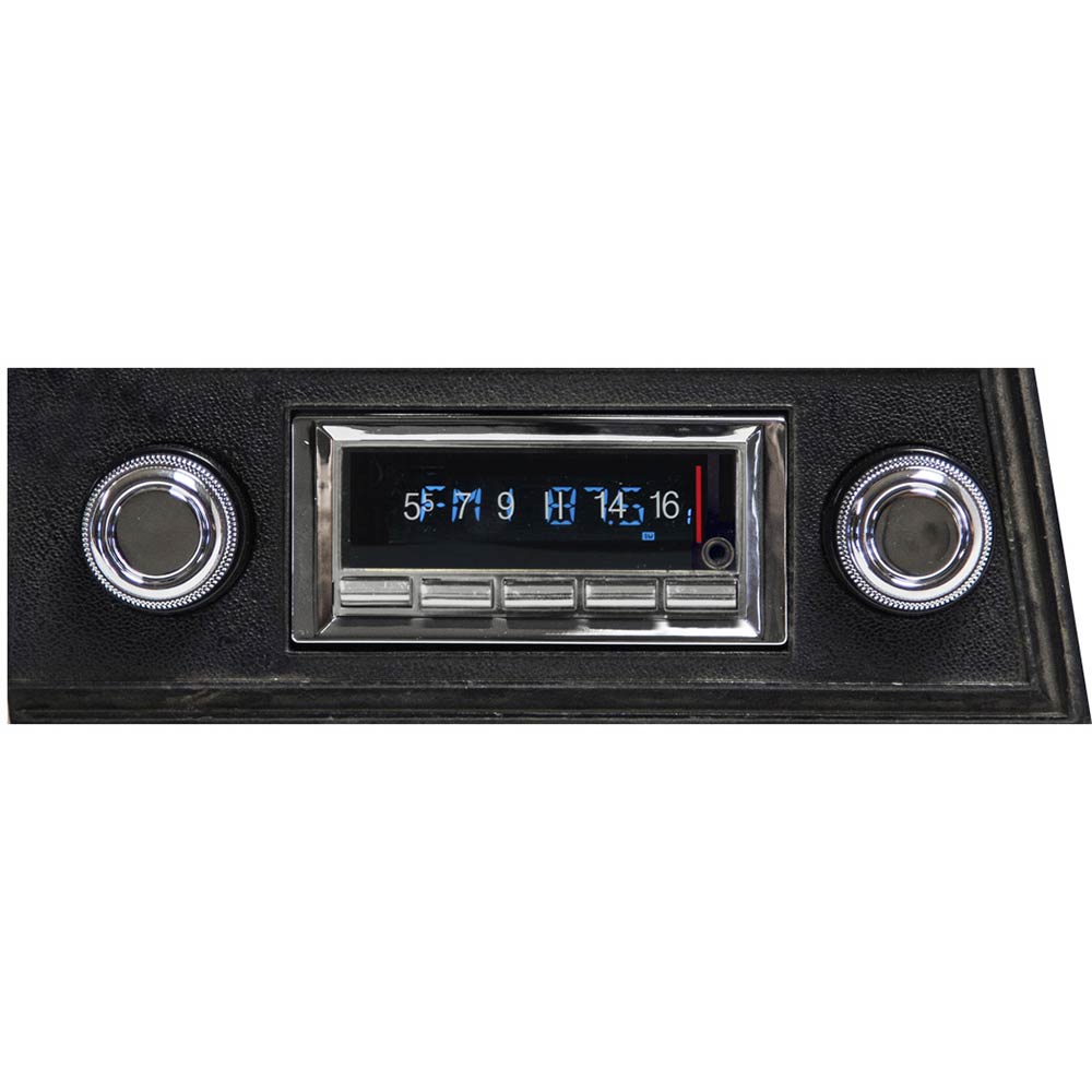 The USA-740 offers the same classic look that Custom Autosound has always been known for with today’s latest features. Now, with built-in Bluetooth (microphone included), answer calls and get Bluetooth streaming music from your Bluetooth capable phone or Bluetooth compatible device. Match the dominant color of your instrument cluster with user selectable multiple LCD color choices with LCD dimmer control. The AM/FM RDS tuner shows station, song and artist on the LCD display. Fully controls optional CD-1 CD player. Classic style with today’s sound and performance taking every road and curve with you in your vintage vehicle.