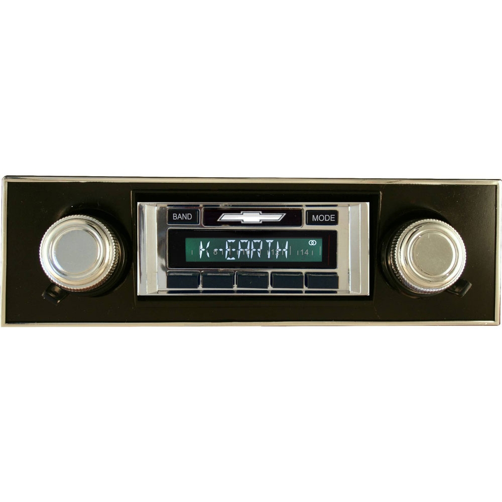 Custom Autosound's USA-630 is designed to provide the best in audio technology wrapped in a classic car stereo look. It will fit your car or truck's stock dash without any modifications required. It has been designed with a bezel containing your car's manufacturer logo as well as large OEM style push-buttons to compliment your dash.