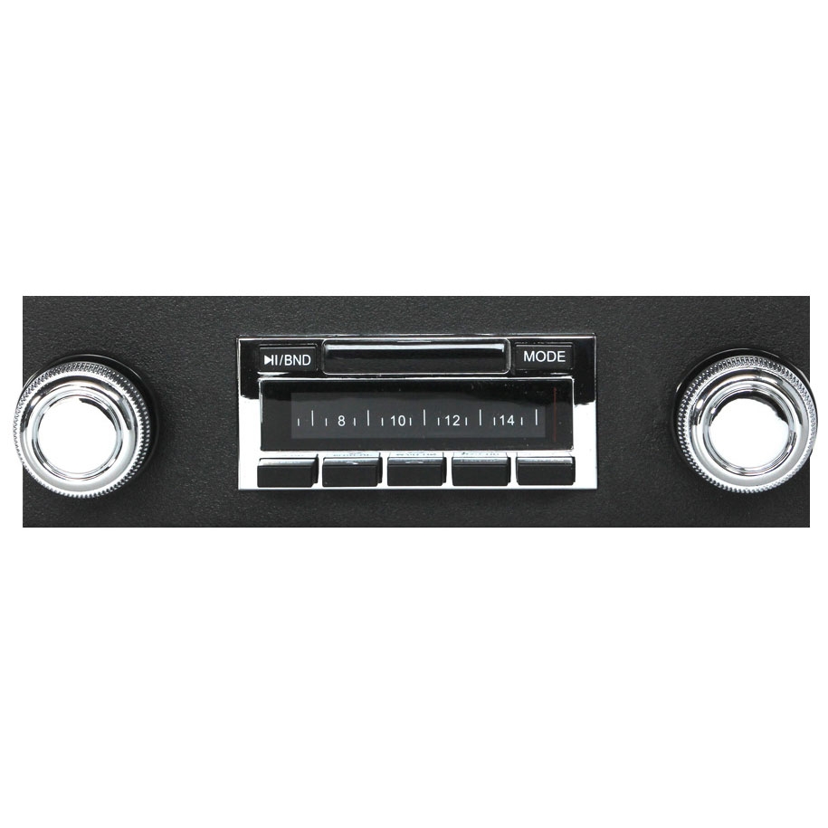 Custom Autosound's USA-630 is designed to provide the best in audio technology wrapped in a classic car stereo look. It will fit your car or truck's stock dash without any modifications required. It has been designed with a bezel containing your car's manufacturer logo as well as large OEM style push-buttons to compliment your dash.