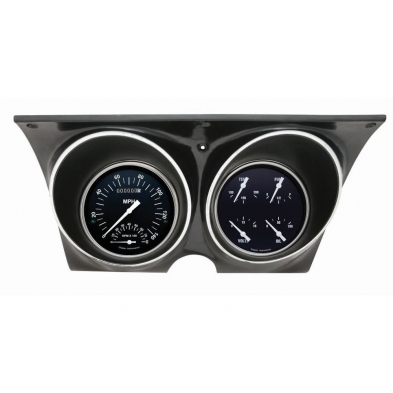 The Hot Rod Design 1967-68 Camaro instrument cluster is assembled with a premium quality OER production dash bezel. The set includes a 4-5/8" SpeedTachular (with built-in ECM filter signal switch and LED turn signals in the face) and quad gauge with temp, volt, oil pressure and fuel gauge programmed to read the stock 0-90 ohm fuel sender. This package is ready to bolt into your dash, complete with all necessary sending units, mounitng hardware and a wiring harness constructed of automotive grade TXL wire, machine-crimped terminals, tech-flex sleeving and Molex main connectors.