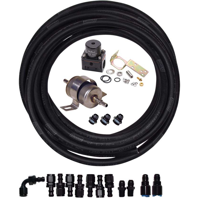 This kit includes 25 feet of twisl lok hose and all of the fittings need to connect a Tanks Inc. fuel pump to a carbureted engine (-6AN male carb adapter fitting is required at the carburetor).