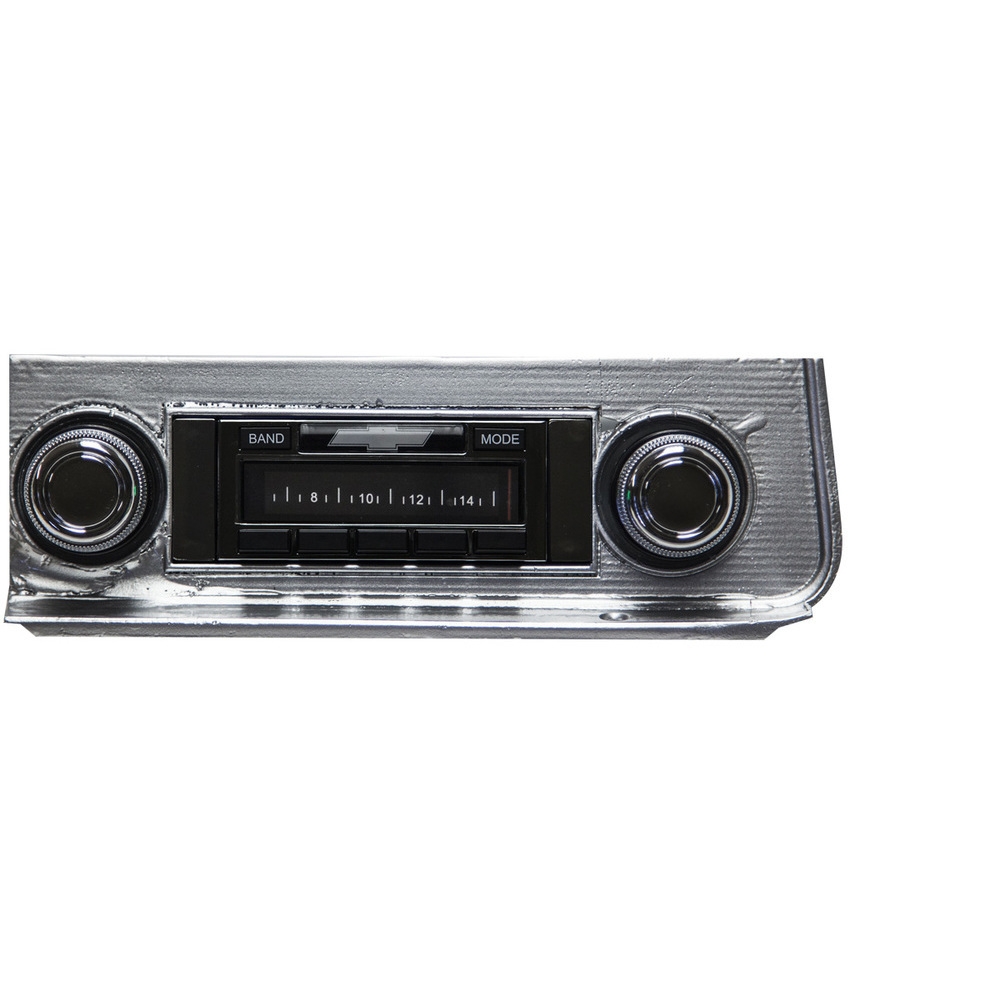 Custom Autosound's USA-630 is designed to provide the best in audio technology wrapped in a classic car stereo look. It will fit your car or truck's stock dash without any modifications required. It has been designed with a bezel containing your car's manufacturer logo as well as large OEM style push-buttons to compliment your dash.