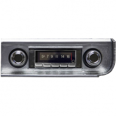 The USA-740 offers the same classic look that Custom Autosound has always been known for with today’s latest features. Now, with built-in Bluetooth (microphone included), answer calls and get Bluetooth streaming music from your Bluetooth capable phone or Bluetooth compatible device. Match the dominant color of your instrument cluster with user selectable multiple LCD color choices with LCD dimmer control. The AM/FM RDS tuner shows station, song and artist on the LCD display. Fully controls optional CD-1 CD player. Classic style with today’s sound and performance taking every road and curve with you in your vintage vehicle.