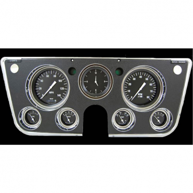 The 1967-72 Chevy Truck Package with in the Hot Rod Series installed, features a 4-5/8" Speedometer and Tachometer, 3-3/8" Clock and 2-1/8" Fuel (0-90 ohm), Oil, Temp, and Volt gauges. A blue LED high beam indicator is installed in the speedometer. The set includes pre-wired electrical connections, mounting hardware, all necessary* sending units, and a wiring harness constructed of automotive grade TXL wire, machine-crimped terminals, tech-flex sleeving, and Molex main connectors. It is equipped with their ZST.