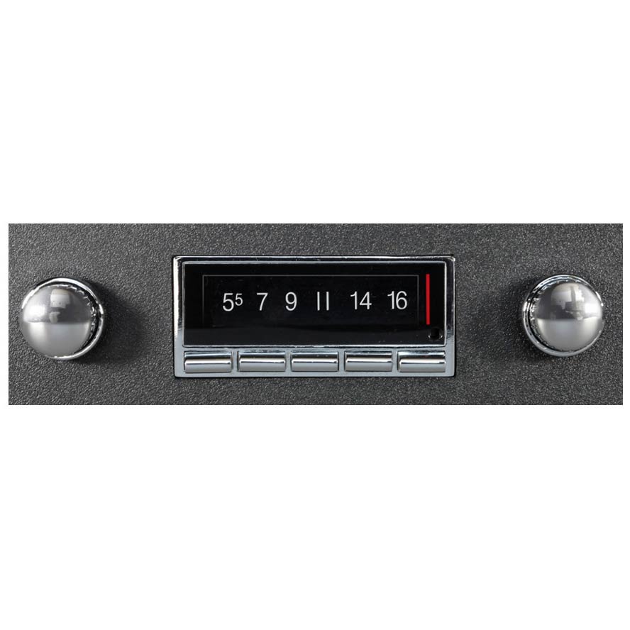 The USA-740 offers the same classic look that Custom Autosound has always been known for with today’s latest features. Now, with built-in Bluetooth (microphone included), answer calls and get Bluetooth streaming music from your Bluetooth capable phone or Bluetooth compatible device. Match the dominant color of your instrument cluster with user selectable multiple LCD color choices with LCD dimmer control. The AM/FM RDS tuner shows station, song and artist on the LCD display. Fully controls optional CD-1 CD player. Classic style with today’s sound and performance taking every road and curve with you in your vintage vehicle.