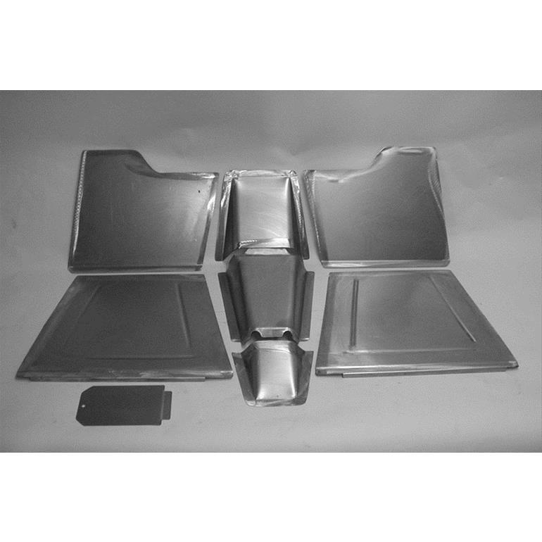 This Direct Sheetmetal 40 Chevy front floorboard is made to fit with 2" setback firewall for a small block. This kit consist of floorpans, toeboards, and transmission cover.