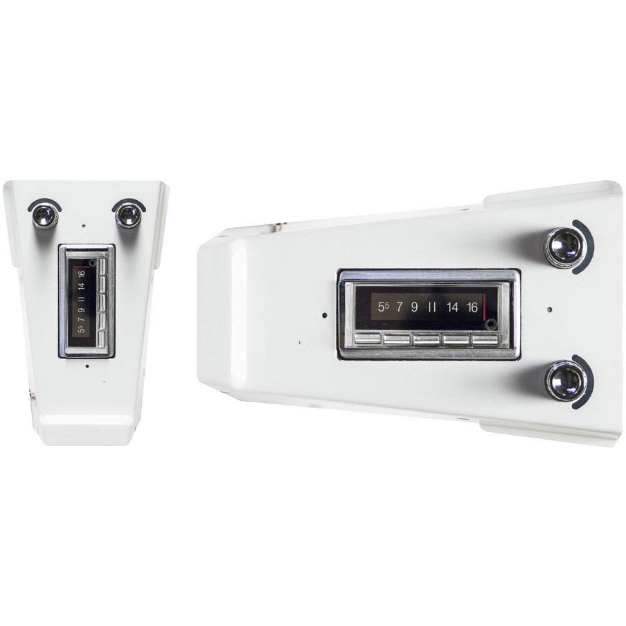 The USA-740 offers the same classic look that Custom Autosound has always been known for with today’s latest features. Now, with built-in Bluetooth (microphone included), answer calls and get Bluetooth streaming music from your Bluetooth capable phone or Bluetooth compatible device. Match the dominant color of your instrument cluster with user selectable multiple LCD color choices with LCD dimmer control. The AM/FM RDS tuner shows station, song and artist on the LCD display. Fully controls optional CD-1 CD player. Classic style with today’s sound and performance taking every road and curve with you in your vintage vehicle.
