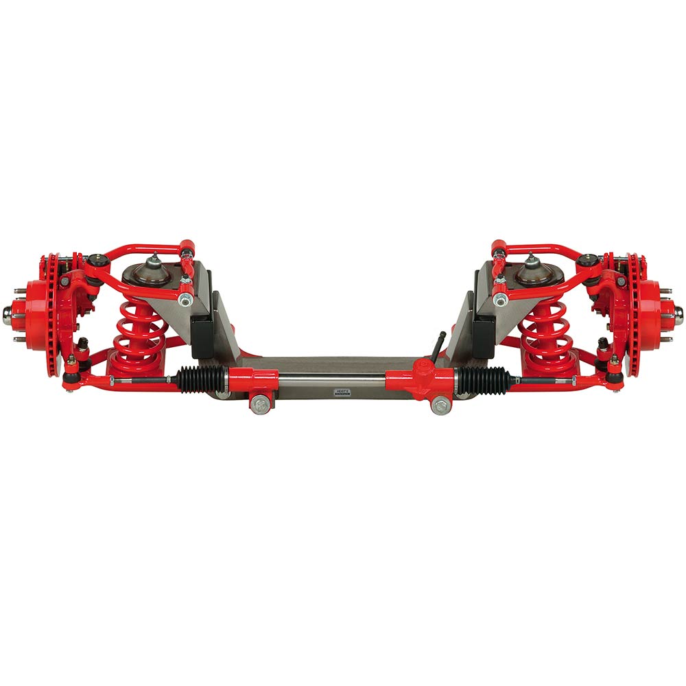 This is a Heidt's 1940-46 Chevy pickup Mustang II independent front suspension kit. This kit includes crossmember, tubular control arms, 11" iron rotors with GM single piston calipers, stock or drop spindles, shocks with springs and manual rack and pinion.