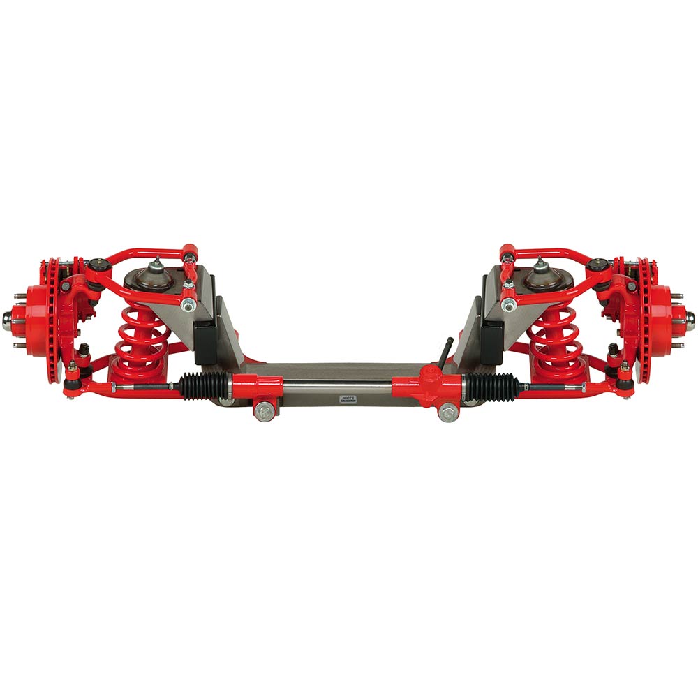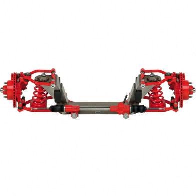 This is a Heidt's 1947-54 Chevy pickup Mustang II independent front suspension kit. This kit includes crossmember, tubular control arms, 11" iron rotors with GM single piston calipers, stock or drop spindles, shocks with springs and manual rack and pinion.