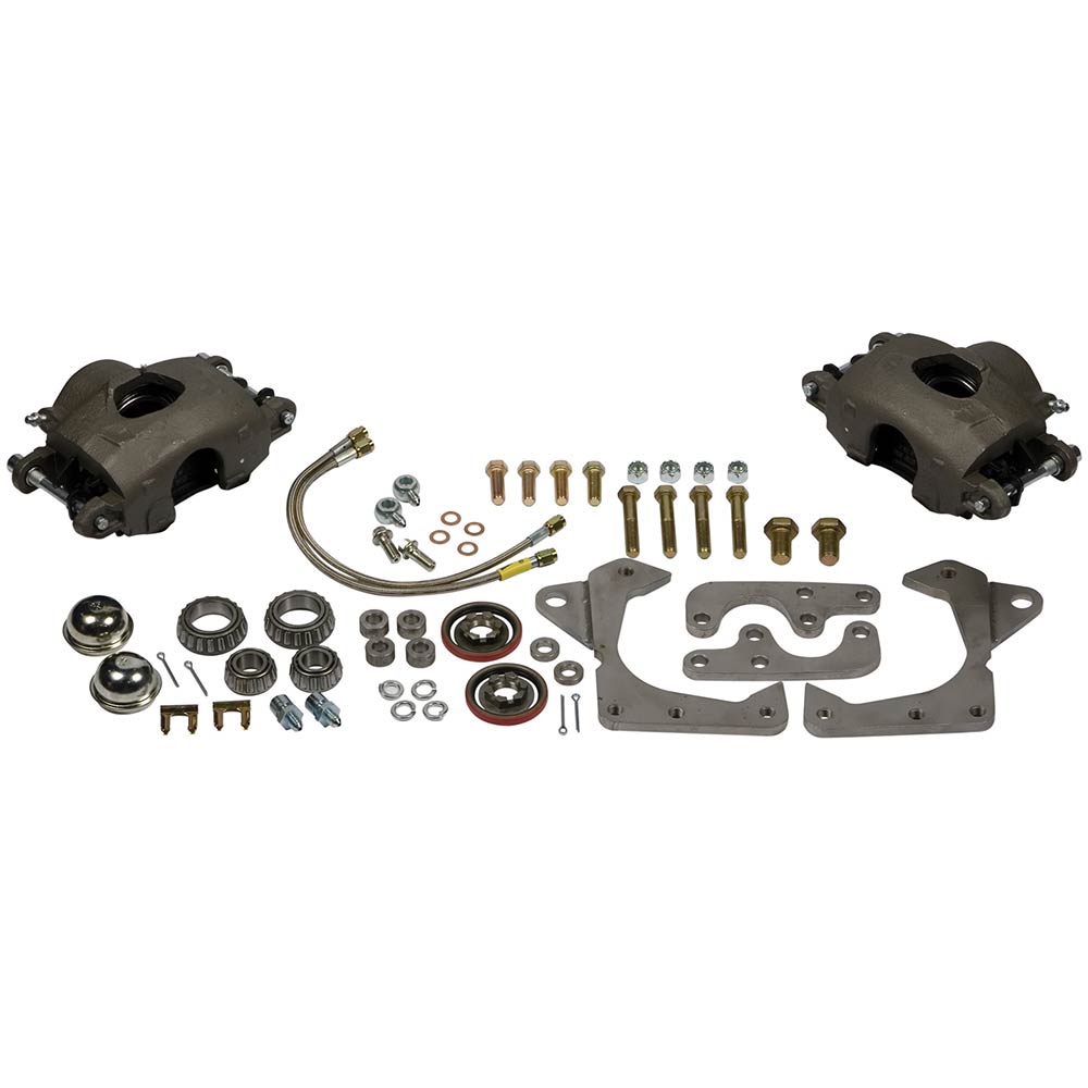This is a 1955-57 Chevy Complete Disc Brake Kit for Stock Spindles with 11" Rotors and Single Piston Calipers. Please Note this kit adds 1" track width to each side.