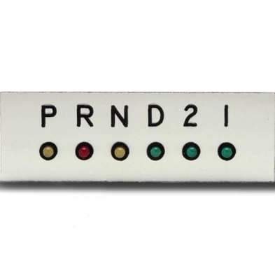 12 Volt LED Gear Position Indicator for surface mount applications.  Plate is held on by first drilling the holes for the LED through the dash and running wire from LED's into the dash. When the plate is placed against the dash it will be held in place by the LED's.