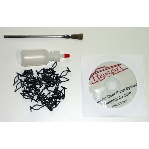 Complete kit including clips, adhesive, brush, and instructions.