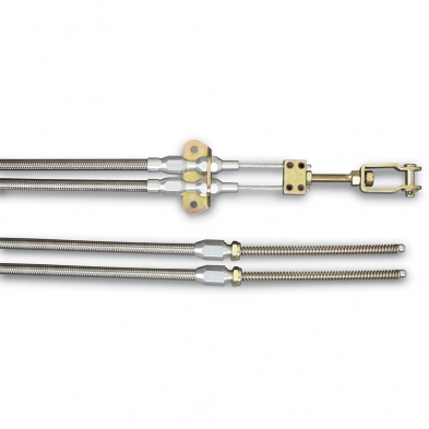 Kit is designed for use with Lokar's Floor Mount Emergency Hand Brake and in conjunction with Lokar Connector Cables. Kit comes equipped with quality aluminum fittings. (Always use anti-seize on aluminum fittings to avoid galling.) Ferrule is included to eliminate fraying of stainless housing. Outer housing is designed with specially extruded liner for extended life of the cable. Stainless inner cable resists moisture. Lokar brake cables come complete with union block on clevis assembly, mounting bracket and adjusters. Kit includes two 8 foot outer housings “U-Cut-to-Fit”.