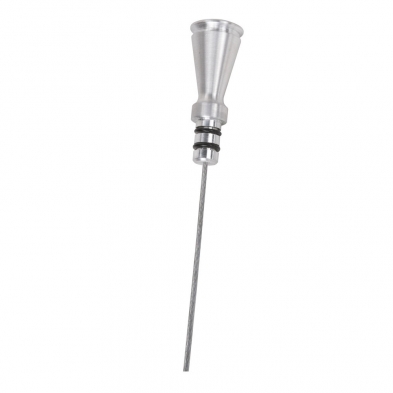 This dipstick is designed with a billet aluminum handle to coordinate with Lokar’s Flexible Transmission Dipstick. Slim design allows mounting inside headers. Designed for use with factory or block hugger headers. E-Z to Read flexible inner dipstick measuring cable for accurate measure of engine oil.
