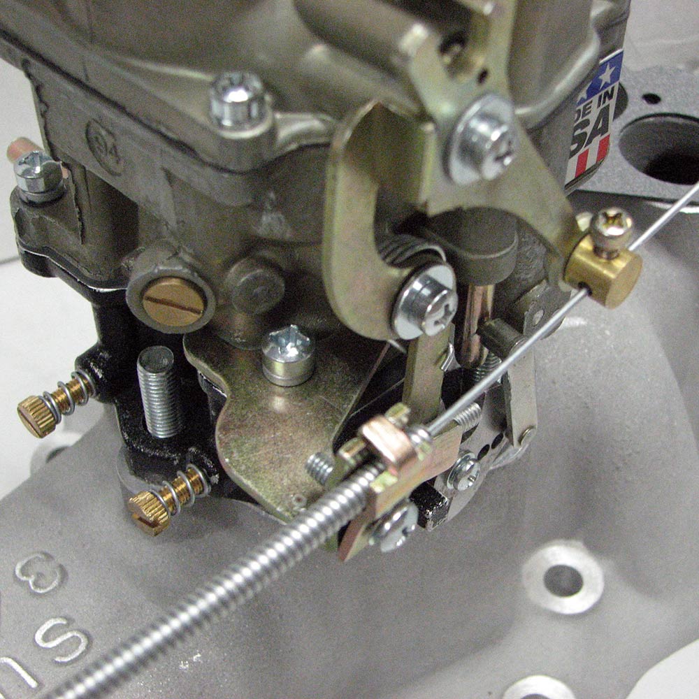 The Edelbrock 94 trade; Carburetor choke bracket kit provides users with a means of holding a manual choke cable in place upon attaching the cable pull to the carburetor. It includes the bracket and associated hardware. It is a replica of the original Ford bracket that mounted to the carburetor.
