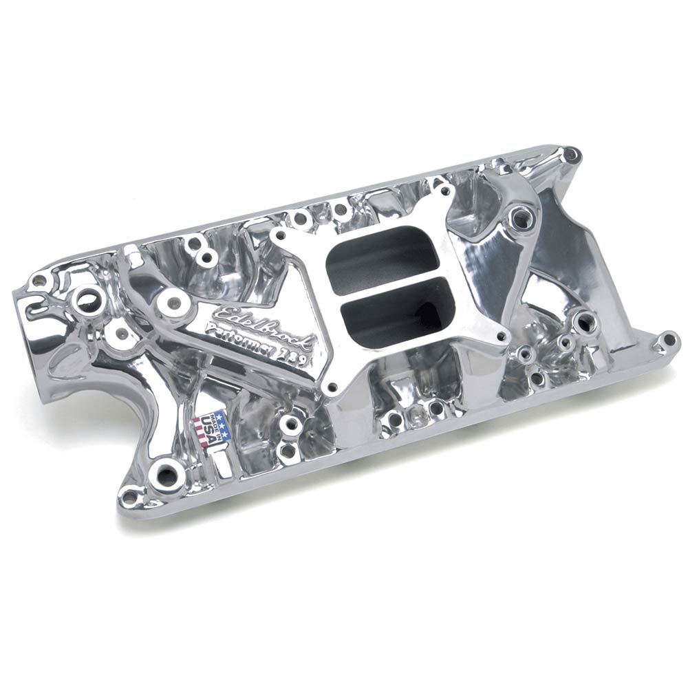 Edelbrock Part # 2121 Performer 289 intake manifold is designed for street 260-289-302 c.i.d. Ford V8's without EGR. Will not fit Boss 302 or 255 c.i.d. V8's. The Patented Dual-plane, low-rise design with a 180-degree firing order greatly improves torque over a wide rpm range for excellent throttle response from off-idle through 5500rpm. The Performer intake manifolds are ideal for passenger cars, trucks, 4x4s, tow vehicles and RVs. Edelbrock carbs will work with Ford automatic overdrive trans (AOD) when used with Lokar bracket SRK-4000.