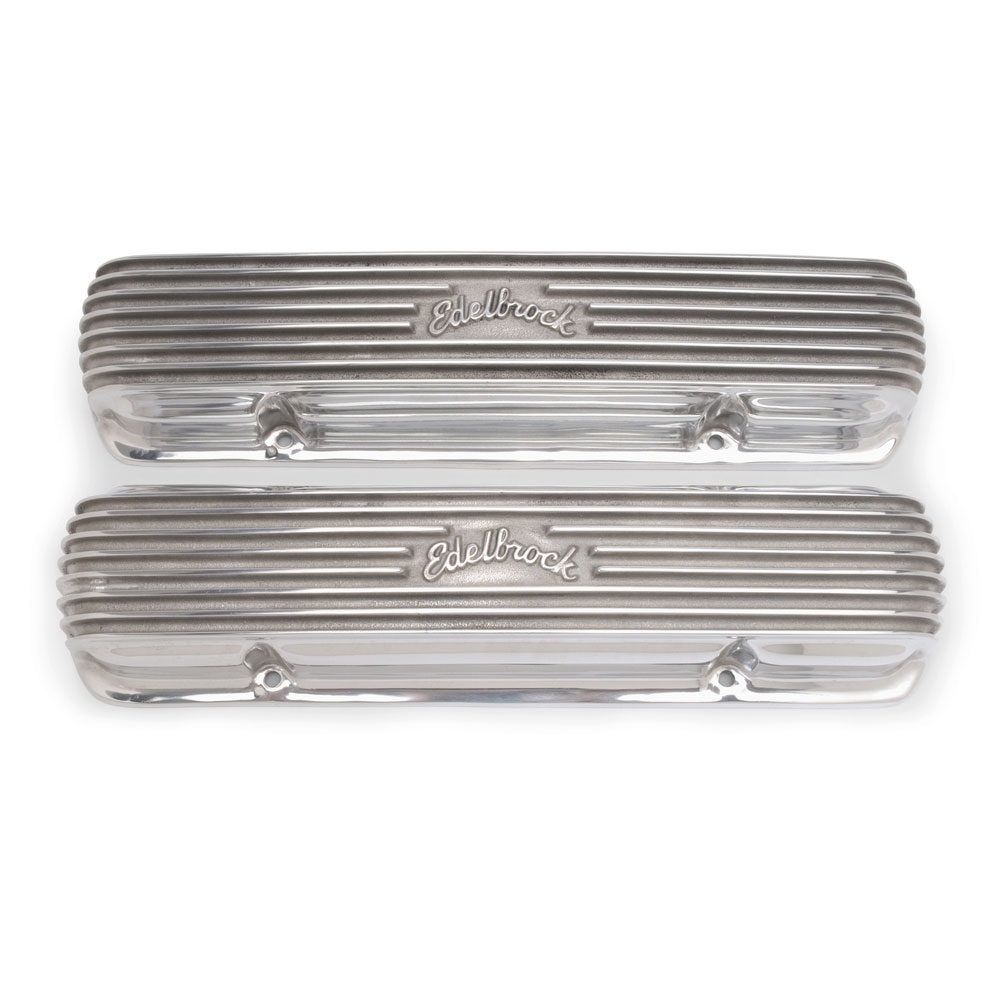 Classic Series Short Valve Covers are designed for Pontiac 301 ndash;455 V8 1962-79 applications. Edelbrock first made these aluminum valve covers in the late '50s and they're still a classic. Made of heavy-gauge sand-cast aluminum, Overall height ;3.125" ;is measured from base to top at the highest point. Edelbrock classic valve covers can be machined to accept breathers if desired.