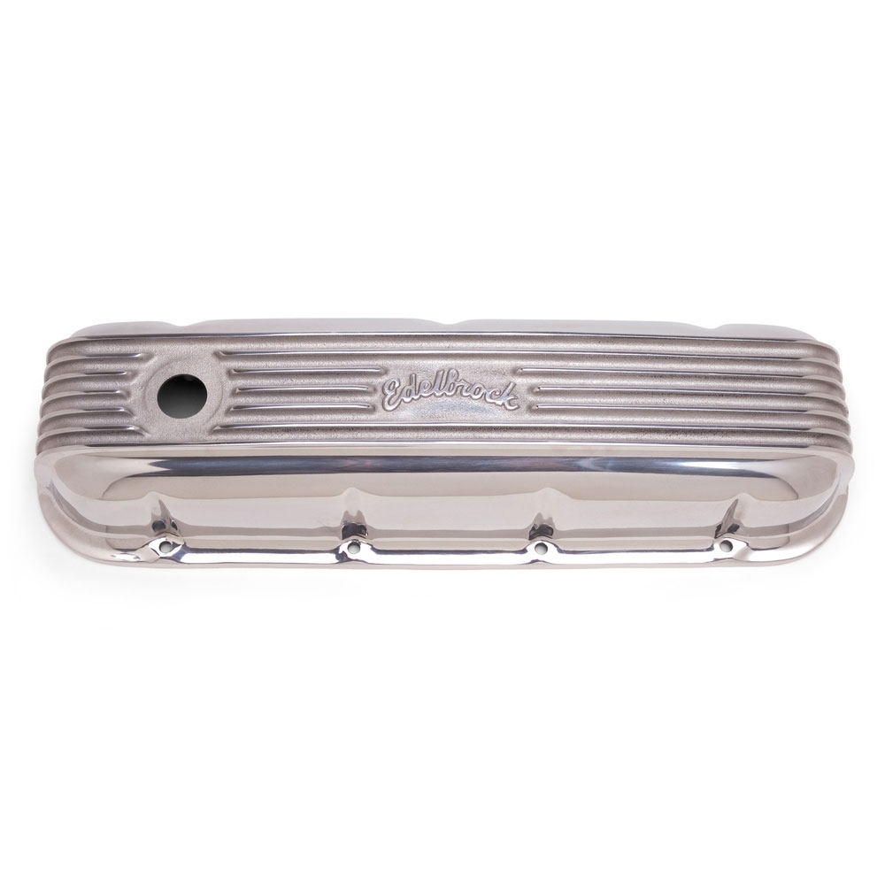 Classic Series Valve Covers are designed for Chevy Big-Block V8 1965 amp; Later applications. Edelbrock first made these aluminum valve covers in the late '50s and they're still a classic. Made of heavy-gauge sand-cast aluminum, Overall height of 3.5" is measured from base to top at the highest point. Edelbrock classic valve covers can be machined to accept breathers if desired.