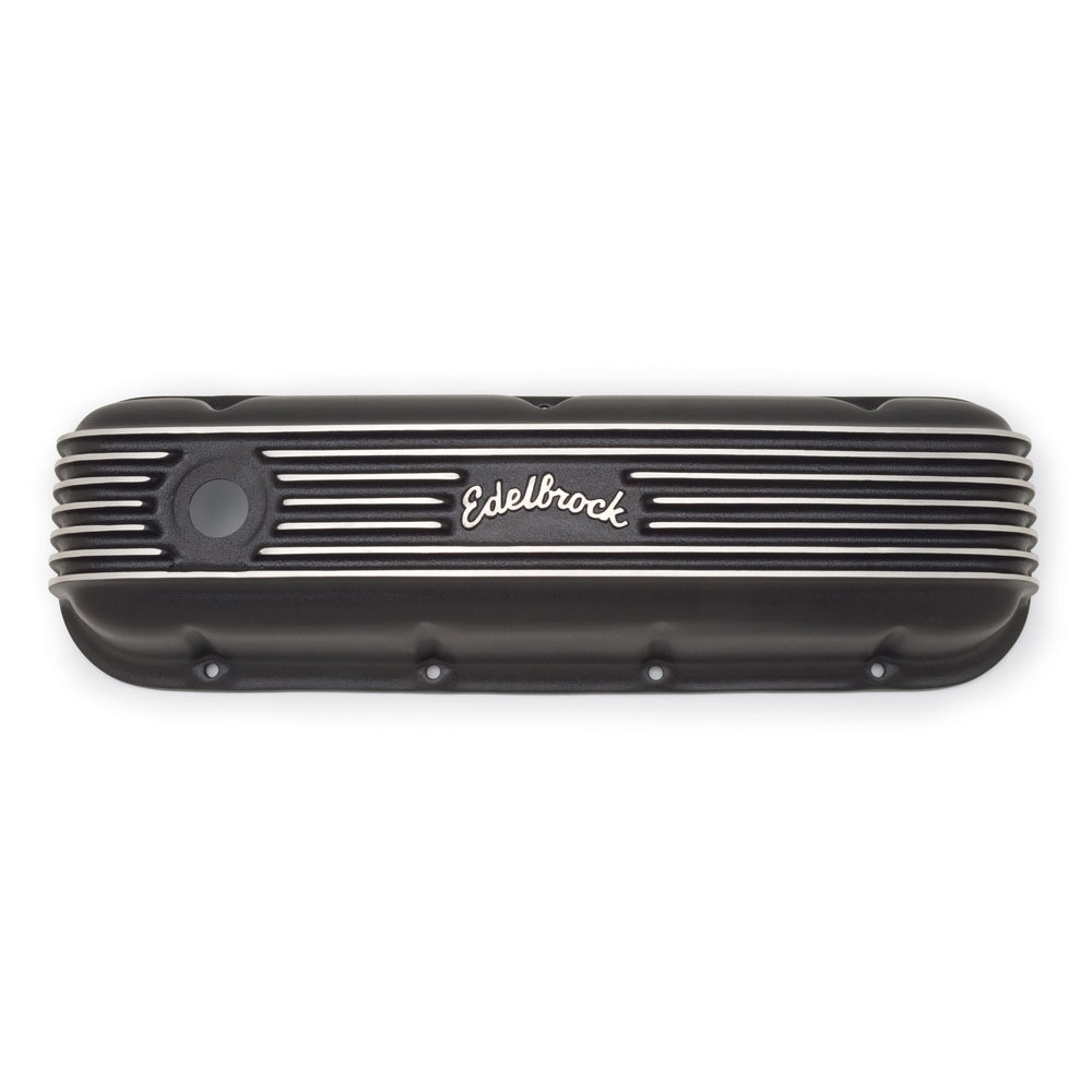 Classic Series Valve Covers are designed for Chevy Big-Block V8 1965 amp; Later applications. Edelbrock first made these aluminum valve covers in the late '50s and they're still a classic. Made of heavy-gauge sand-cast aluminum, Overall height of 3.5" is measured from base to top at the highest point. Edelbrock classic valve covers can be machined to accept breathers if desired.