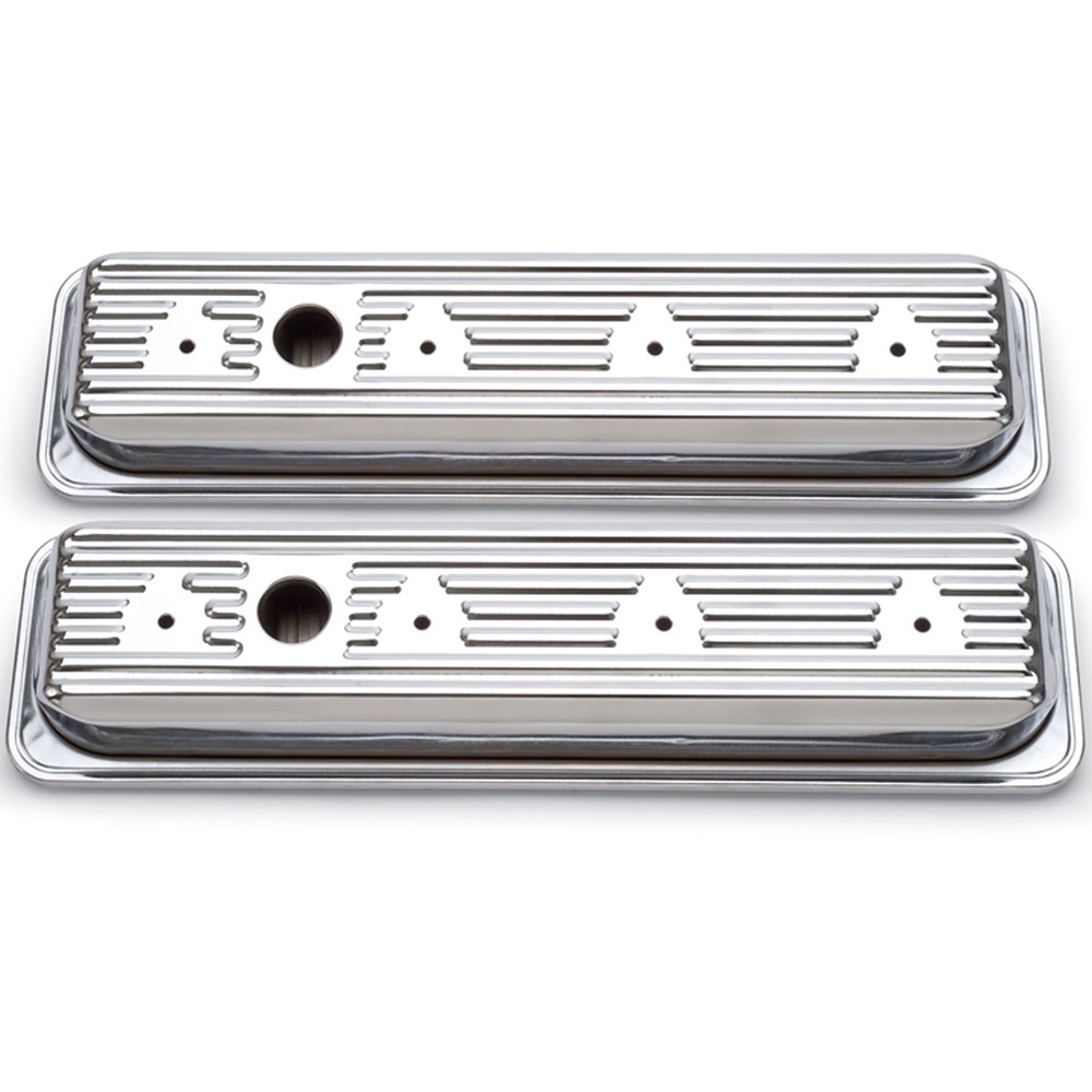 Signature Series Valve Covers are designed for Chevrolet 262-400 '87-95 Center bolt applications. Signature Series valve covers have stock-style breather baffles that prevent oil passage to the PCV valve. These quality valve covers accept all emissions equipment, including PCV valve holes. Rubber grommets for the breather and PCV valve holes are included. Matching breathers sold separately.