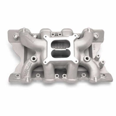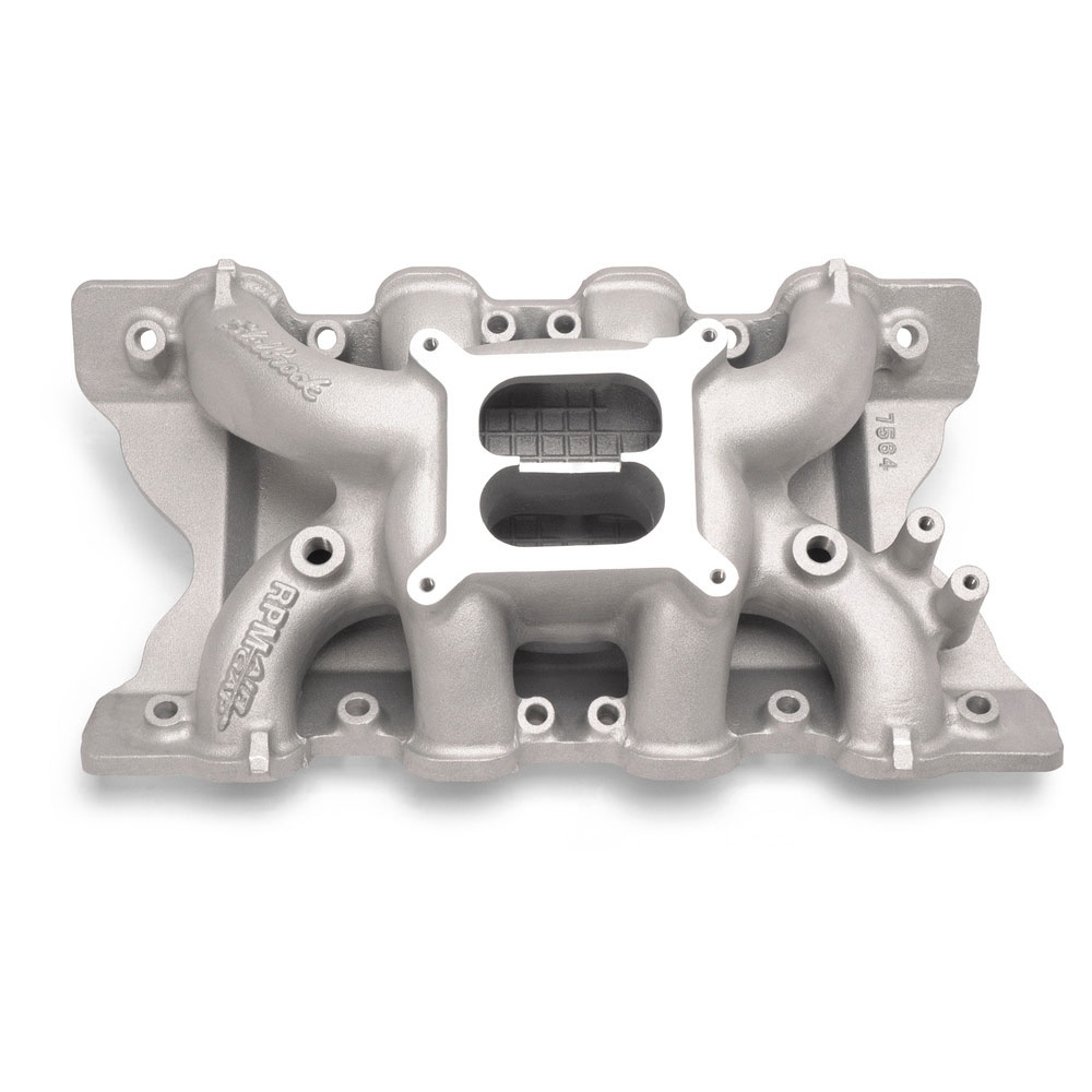 RPM Air-Gap 351C is designed to improve performance on the street or racetrack. This manifold features an open space that separates the runners from the hot engine oil resulting in a cooler, denser charge. The RPM Air-Gap manifold for 351 Cleveland engines is designed to complement Edelbrock's 351C Performer RPM cylinder heads #61609, #61629, #61625 and also works well with 4V and 2V cast iron Cleveland heads. INSTALLATION NOTES: bull; Requires Edelbrock # 8565 bolt kit bull; Recommended intake gasket: Edelbrock # 7265 bull; Manifold height: A-4.48", B-5.56; bull; Carb pad height: 5.02" bull; Carb recommendations: Edelbrock AVS2 or Performer Series 600-800 cfm. For automatic transmissions use # 1483 and # 1493 or # 1844. bull; Port exit dimensions: 1.42" x 2.04" bull; Use RTV sealant to properly seal end seals, such as Edelbrock High Temp Silicone sealant # 1076, DO NOT USE END SEALS GASKETS. bull; Hardened washers Must be used with intake bolts to ensure proper torque and prevent galling of the aluminum.
