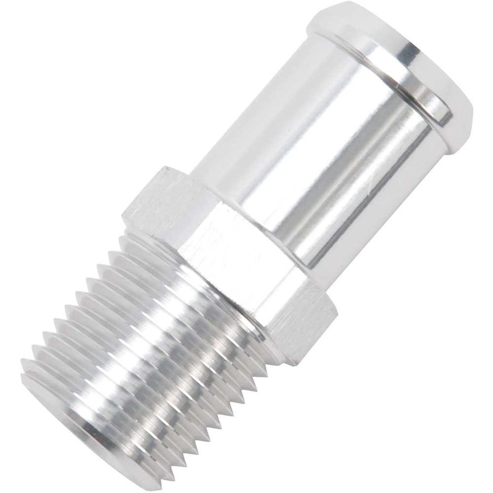 Clear Anodized Hose End, Straight, 1/2" NPT to 3/4" Barbed