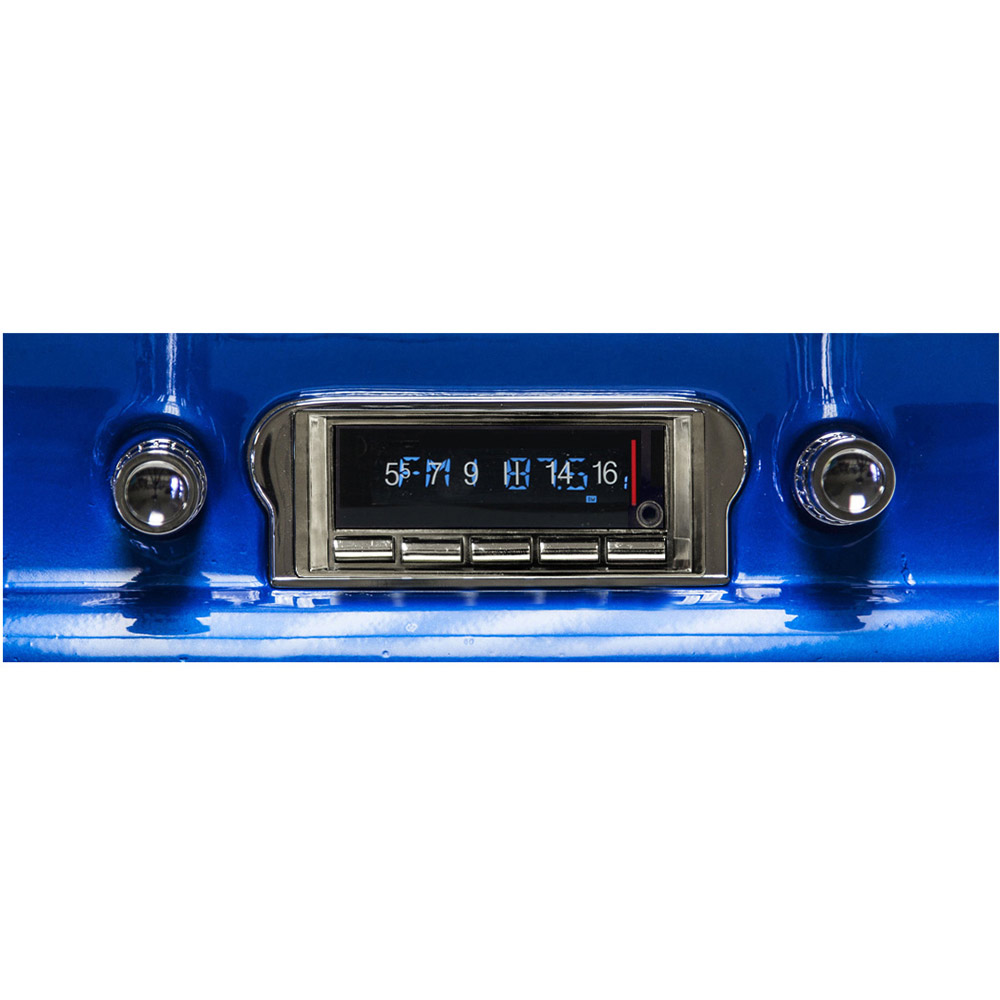 The USA-740 offers the same classic look that Custom Autosound has always been known for with today’s latest features. Now, with built-in Bluetooth (microphone included), answer calls and get Bluetooth streaming music from your Bluetooth capable phone or Bluetooth compatible device. Match the dominant color of your instrument cluster with user selectable multiple LCD color choices with LCD dimmer control. The AM/FM RDS tuner shows station, song and artist on the LCD display. Fully controls optional CD-1 CD player. Classic style with today’s sound and performance taking every road and curve with you in your vintage vehicle.
