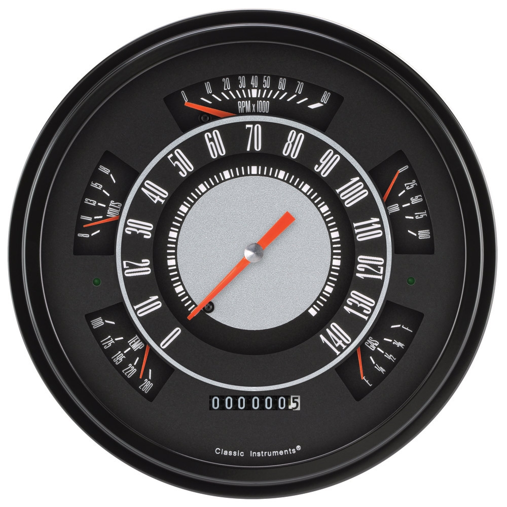 The 1966-77 Ford Bronco Package in Original Black features the Speedometer, Tachometer, Fuel, Temperature, Volt and Oil Gauges all in one direct fit instrument. Installing the all-electronic cluster is easy with the included model specific mounting hardware, Classic Instruments Zeus Speedometer Technology for push button calibration and all the included sending units.