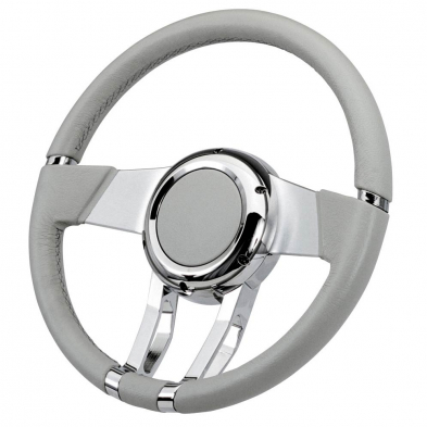 Waterfall 13.8" Light Grey Leather Covered Steering Wheel