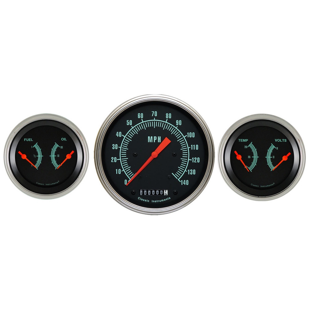The G-Stock Series 3 Gauge Kit includes a 4-5/8" Speedo and 2 Dual Gauges (Fuel and Oil, Temp and Volt) with Stainless Low Step Bezel Curved Glass Lens.