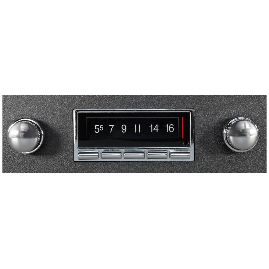 The USA-740 offers the same classic look that Custom Autosound has always been known for with today’s latest features. Now, with built-in Bluetooth (microphone included), answer calls and get Bluetooth streaming music from your Bluetooth capable phone or Bluetooth compatible device. Match the dominant color of your instrument cluster with user selectable multiple LCD color choices with LCD dimmer control. The AM/FM RDS tuner shows station, song and artist on the LCD display. Fully controls optional CD-1 CD player. Classic style with today’s sound and performance taking every road and curve with you in your vintage vehicle.
