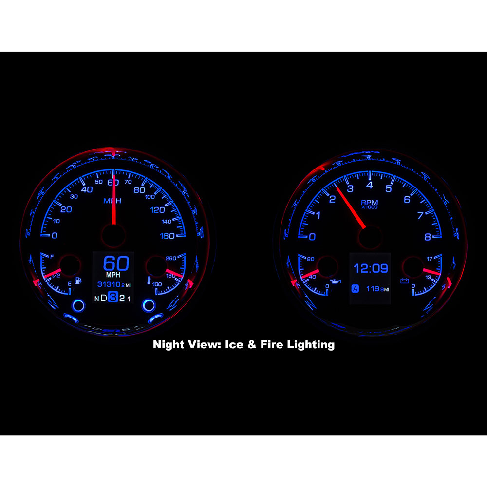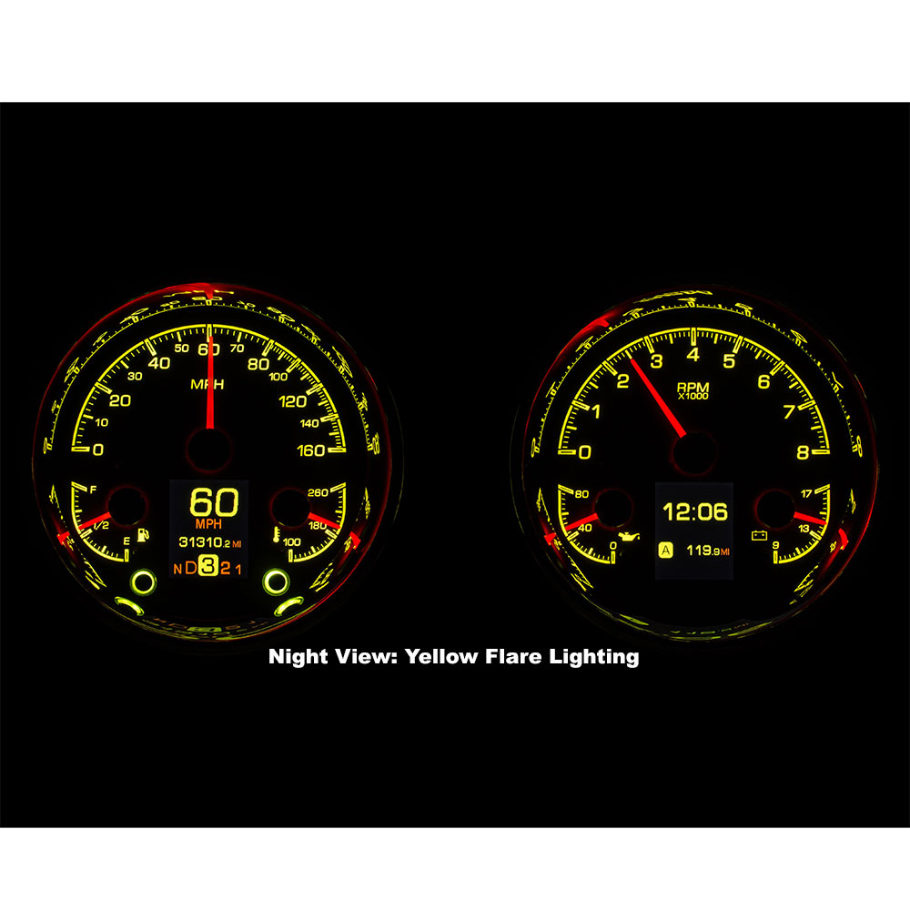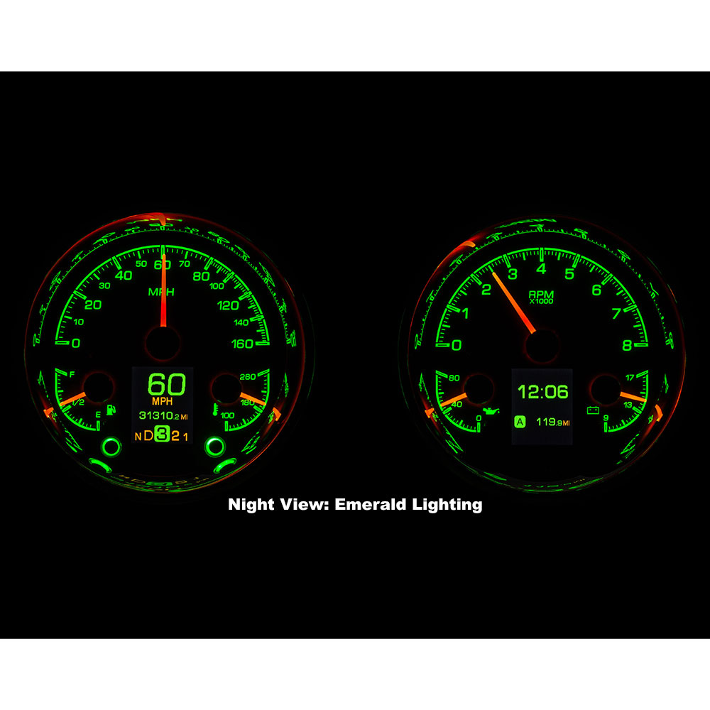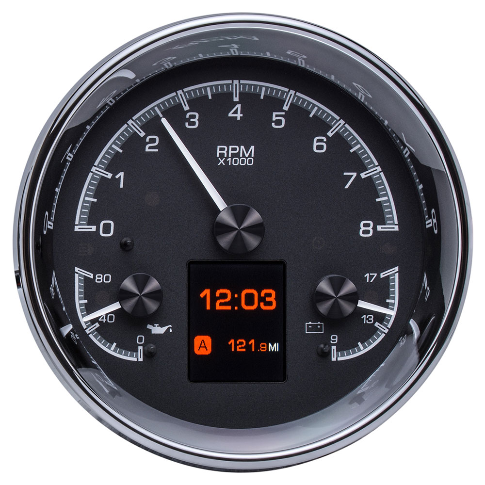 This Dakota Digital gauge kit utilize of pair of 5” round holes, each gauge installs from the front side of your custom dash, and measures 5.4” across. Built-in switches plus one-piece, chrome plated housings/bezels will help this package find its way into a great many applications.