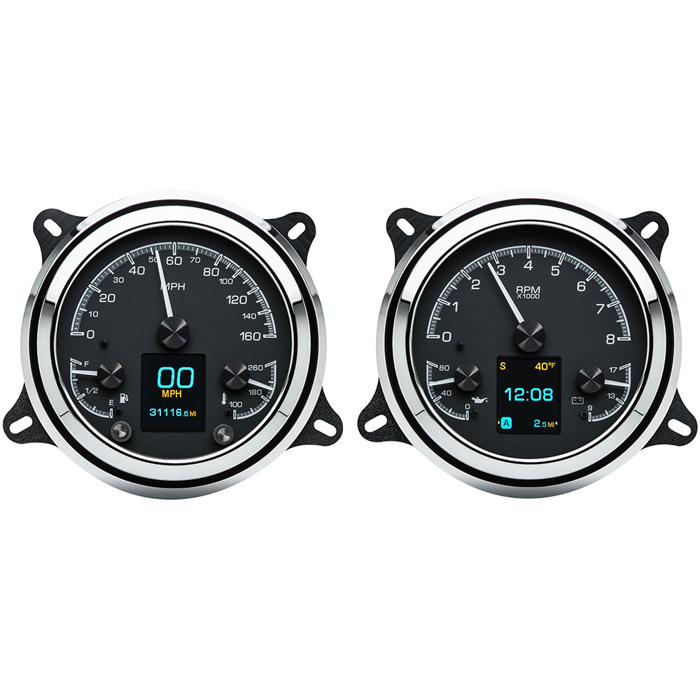 Don’t settle for adapter rings and tiny round gauges crammed inside, go for a direct drop-in solution from Dakota Digital instead! Chrome plated, machined aluminum instrument housings replace the stock bezels for an exact fit into stock 1947-53 Chevy and GMC pickup dashboards.
