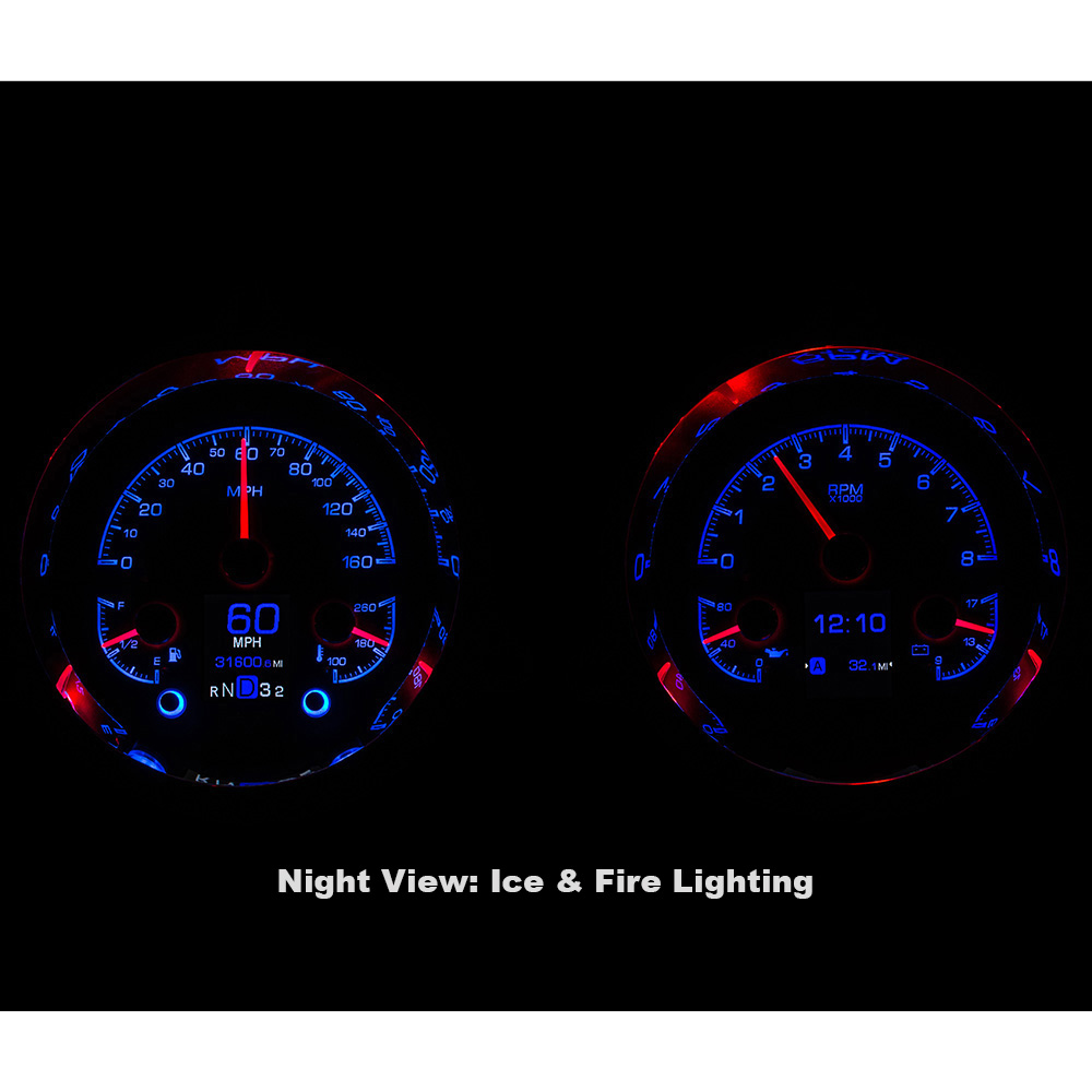 Available with your choice of black or silver alloy gauge-face styling, each HDX system allows you to select independent illumination colors for the gauge readings and needles, as well as the message centers. Calibration and personal settings are manipulated with the built-in, capacitive-touch buttons, or the available Bluetooth app for Apple and Android devices. Each needle hub is black nickel plated spun-aluminum to match the buttons. All HDX instrument systems feature dead-faced indicators (turn signals, high beam, check engine, cruise control, parking brake, plus two user-definable), and a red, settable warning light for each gauge.