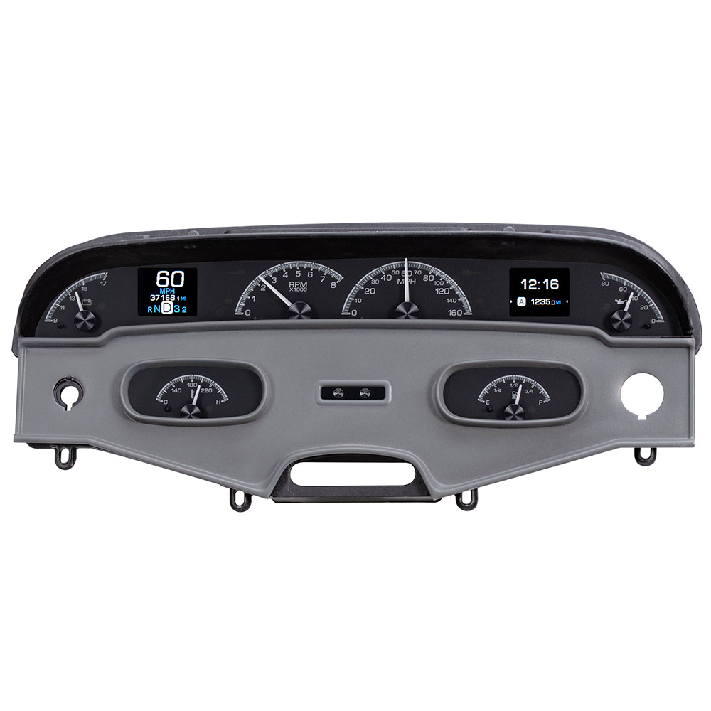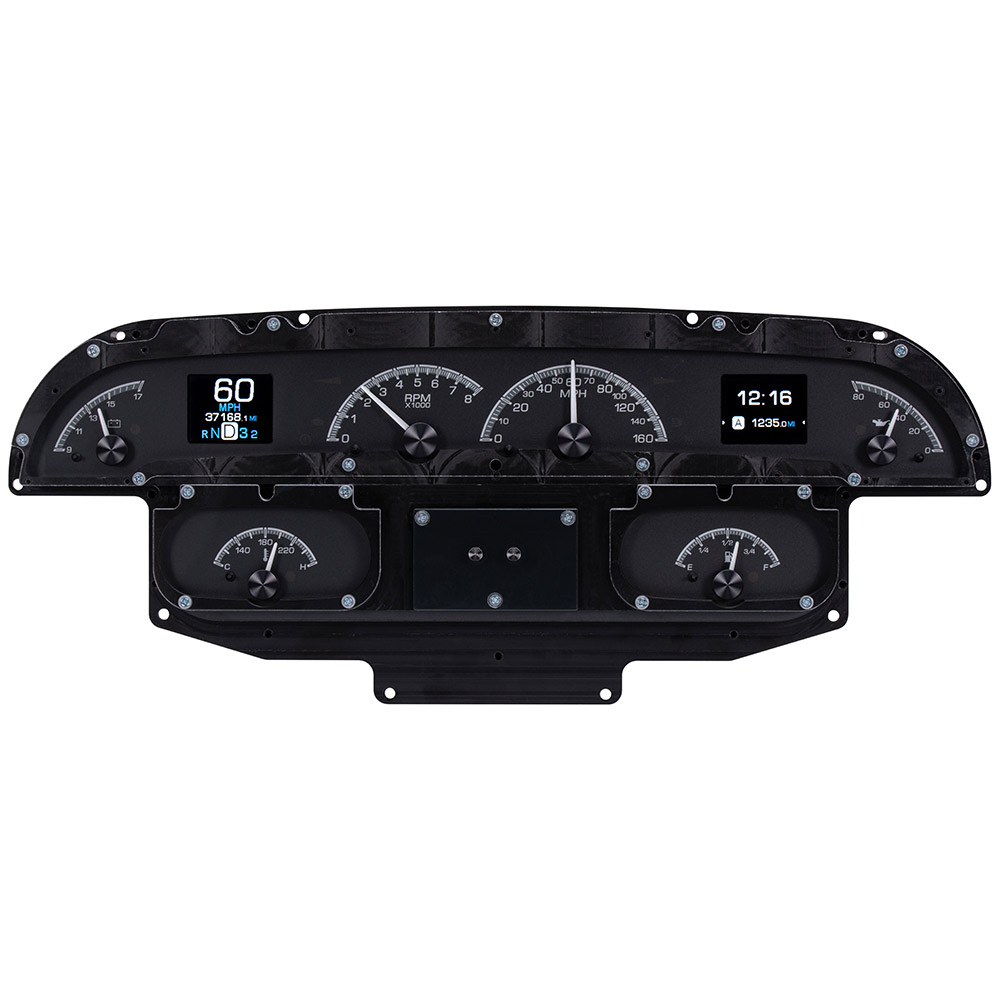 Vehicle integration through a central control box has become a standard for Dakota Digital, and the advantages are substantial. This greatly simplifies installation; two power (constant and switched) and one ground connection get things up and running, while vehicle-harness sourced signals and sensor inputs run cleanly to their respective terminal. Supplied, solid state sending units with weather-tight harnesses ensure years of trouble-free operation. This control box allows for easier service, a clean-looking finished product, and an abundance of technology packed into a vintage dashboard.