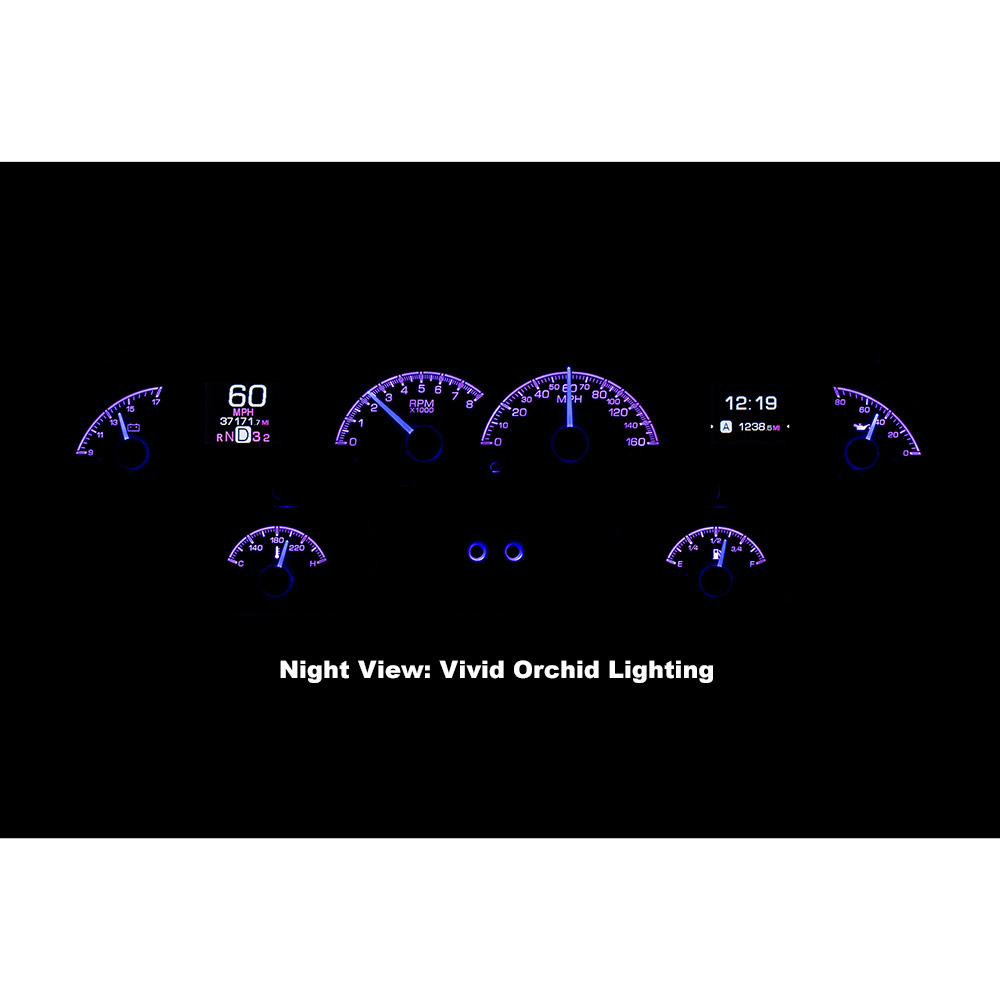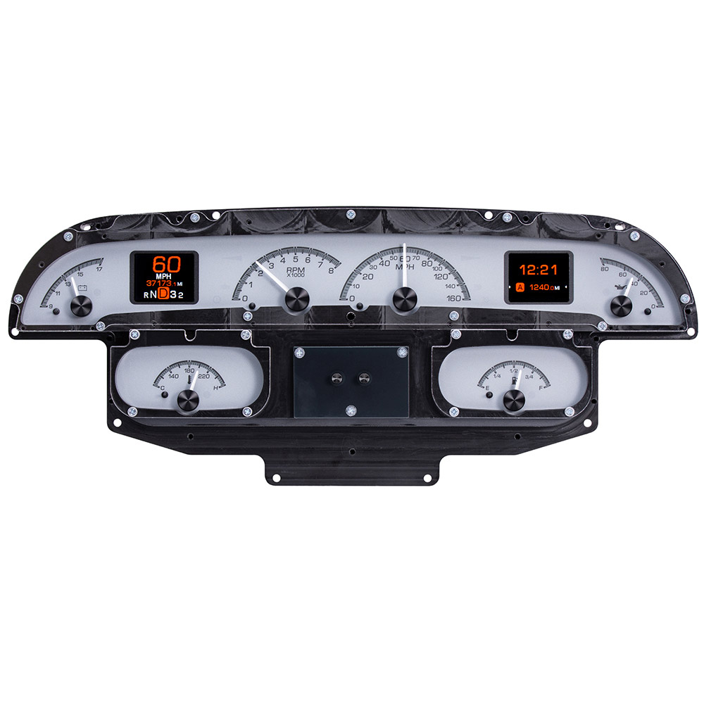 This Dakota Digital HDX Gaug kit is available with your choice of black or silver alloy gauge-face styling, each system allows you to select independent illumination colors for the gauge readings and needles, as well as the message centers. Calibration and personal settings are manipulated with the built-in, capacitive-touch buttons, or the available Bluetooth app for Apple and Android devices. Each needle hub is black nickel plated spun-aluminum to match the buttons. All HDX instrument systems feature dead-faced indicators (turn signals, high beam, check engine, cruise control, parking brake, plus two user-definable), and a red, settable warning light for each gauge.