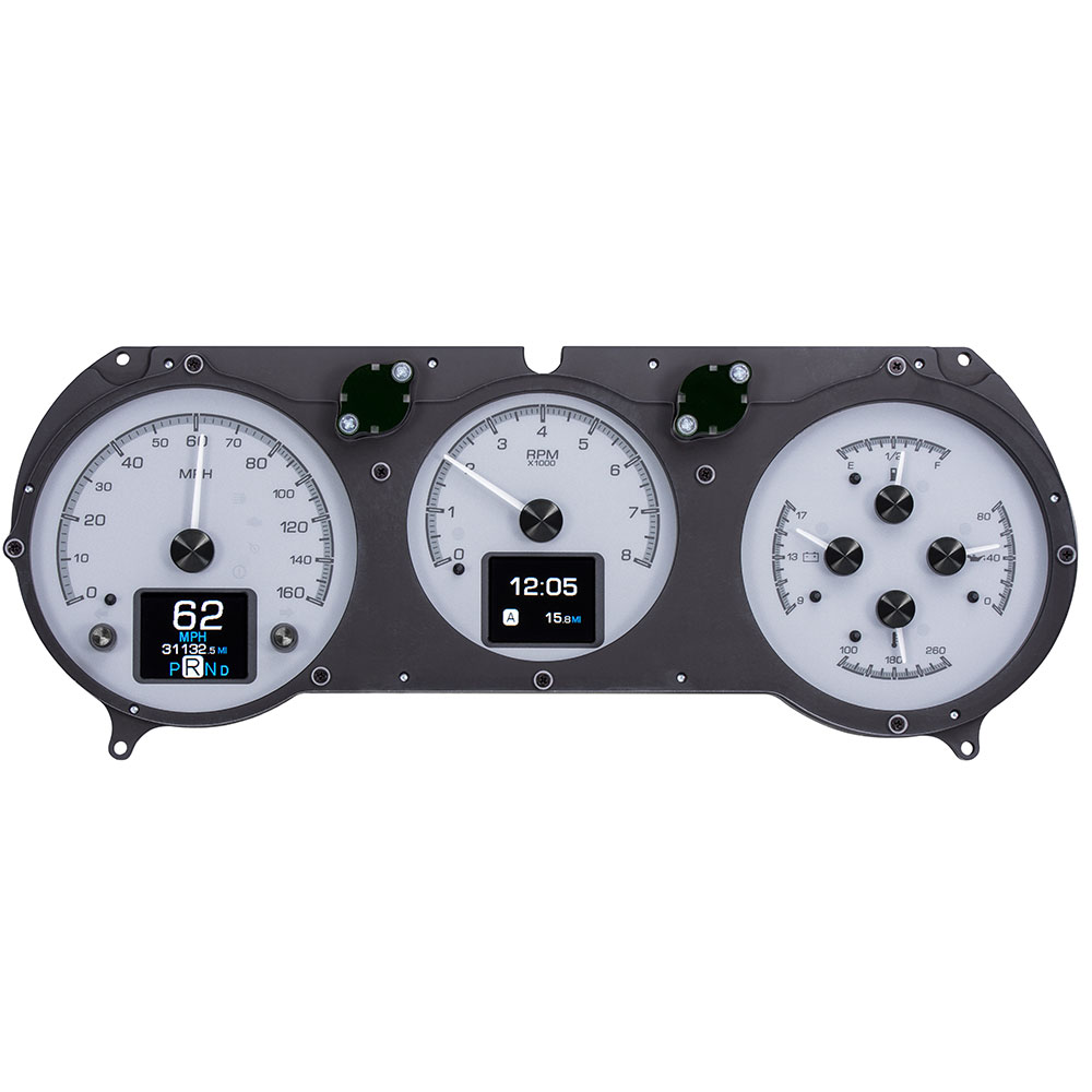 Update your Chevelle with this Dakota Digital HDX gauge kit. It attaches directly to a stock or reproduction bezel (available separately) and supplies you with six analog gauge sweeps and a pair of high-visibility TFT message centers. Black or Silver Alloy face styling is available. You get a full six-gauge system, including billet trim rings and TFT-display message centers, that’s ready to bolt into a stock or reproduction plastic housing.