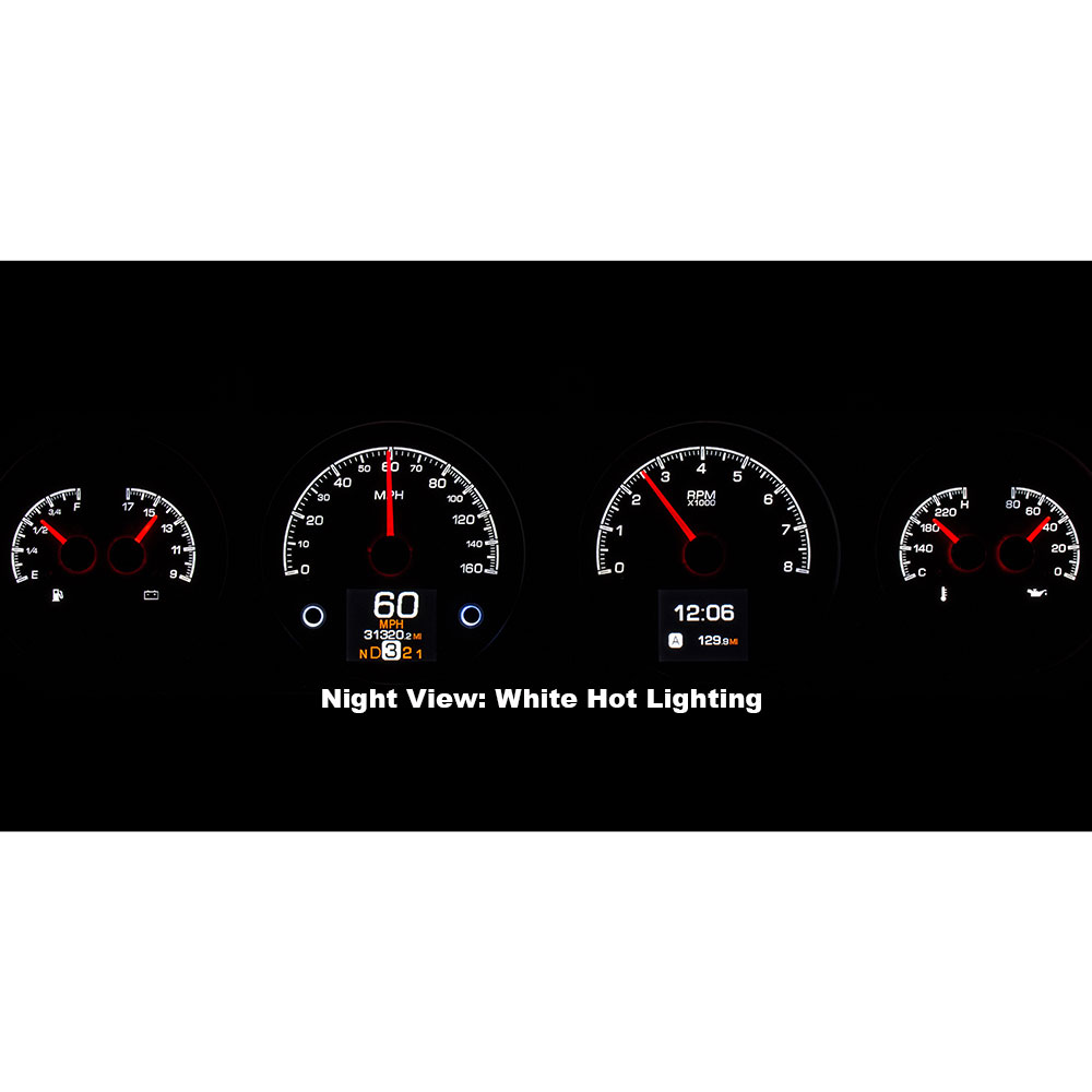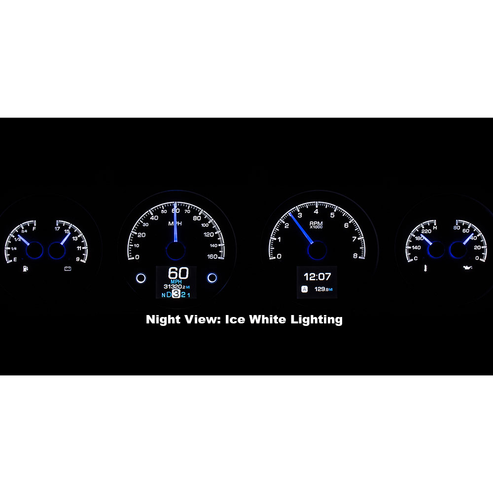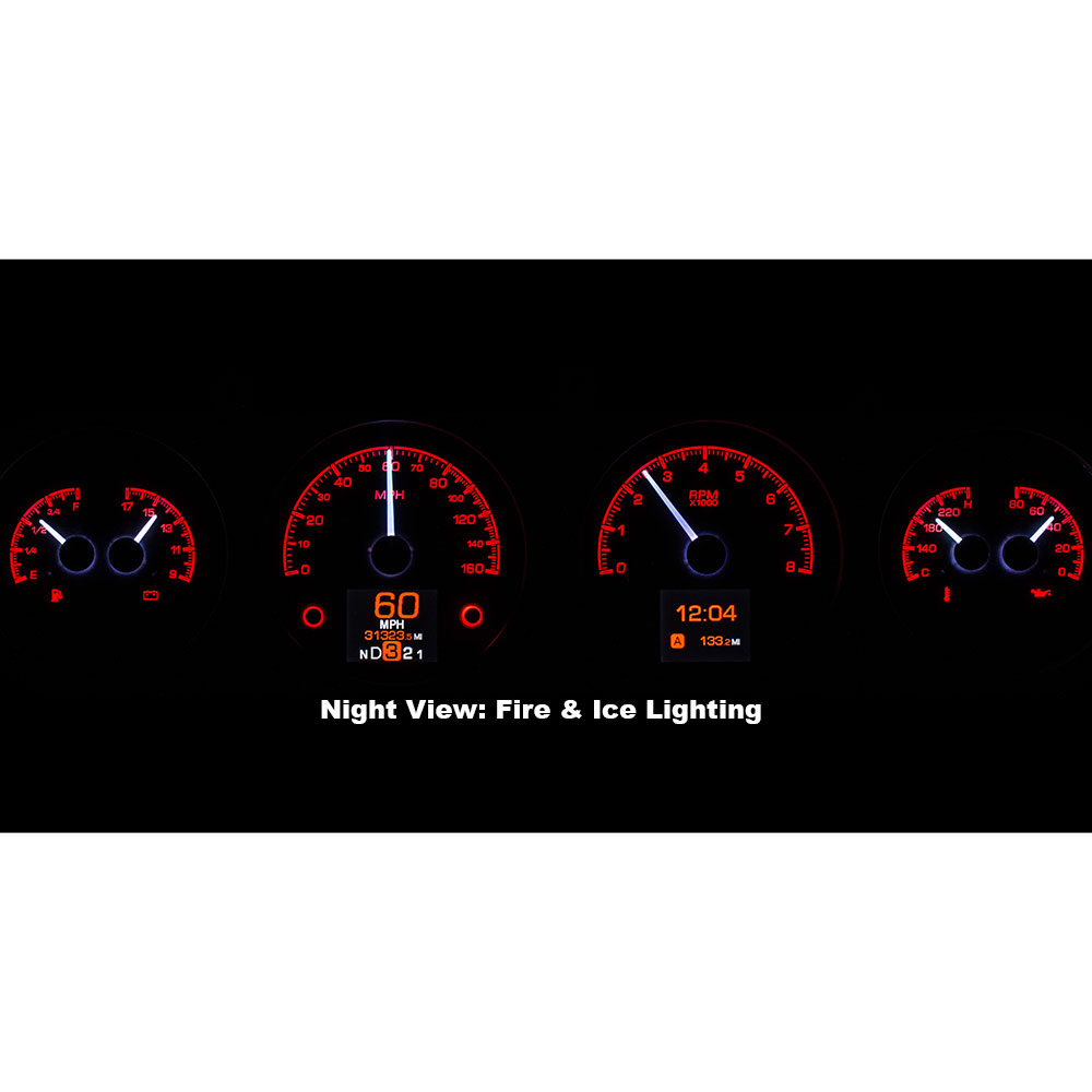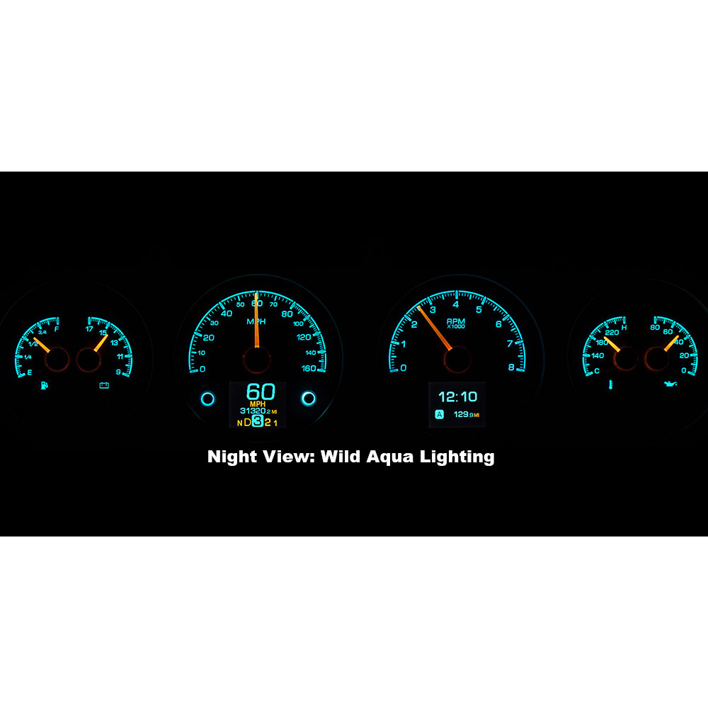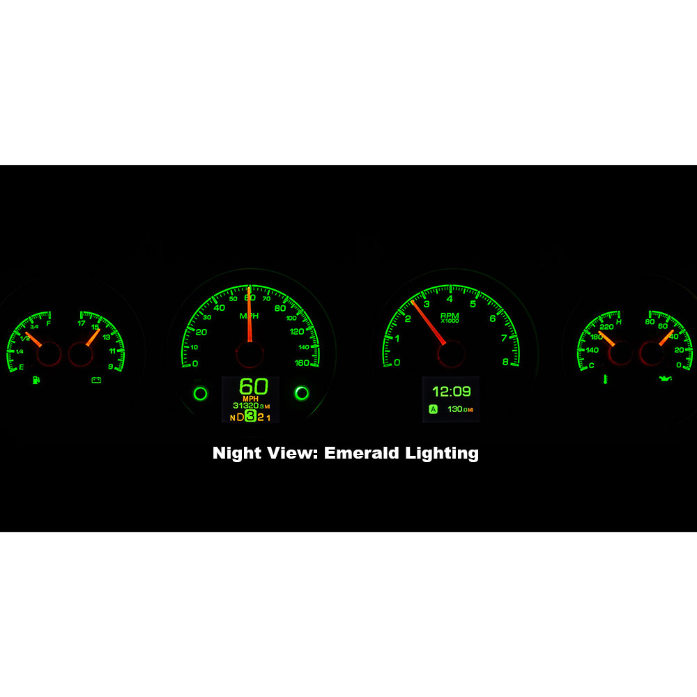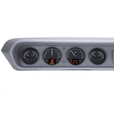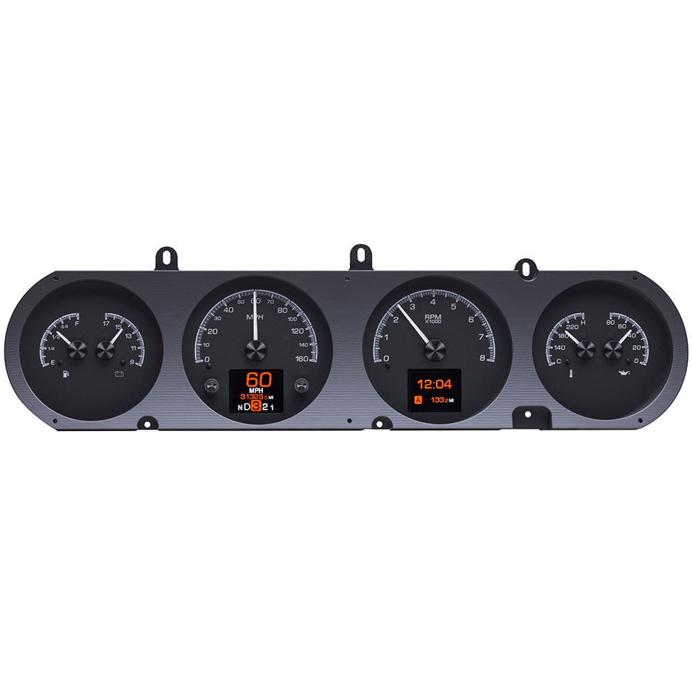 This Dakota Digital HDX gauge kit features two TFT message centers and six analog gauge sweeps will the quartet of openings, allowing the driver to view nearly any parameters desired. Order with your choice of black or silver face styling.