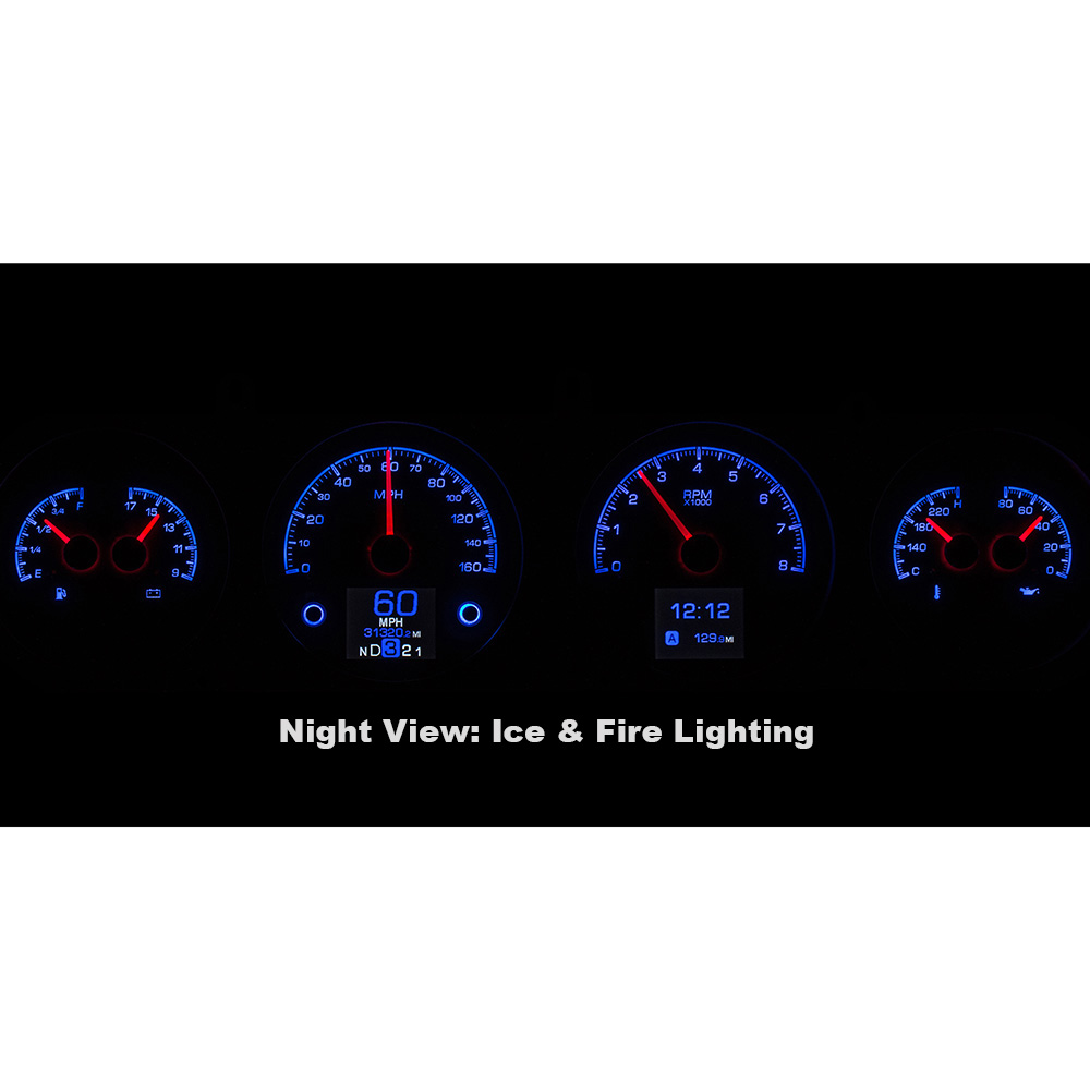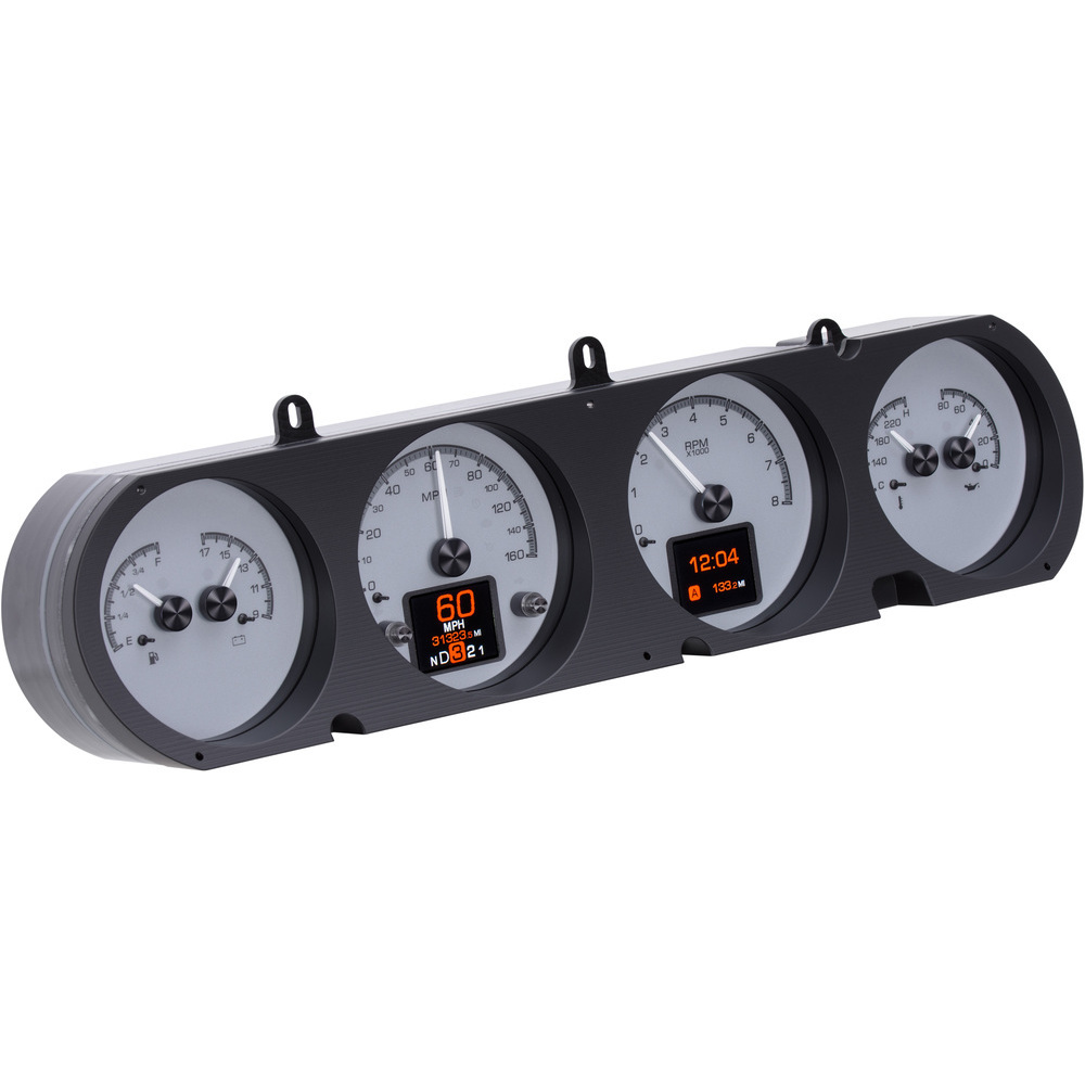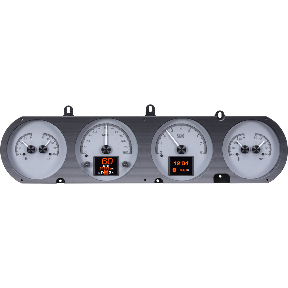 This Dakota Digital HDX gauge kit features two TFT message centers and six analog gauge sweeps will the quartet of openings, allowing the driver to view nearly any parameters desired. Order with your choice of black or silver face styling.