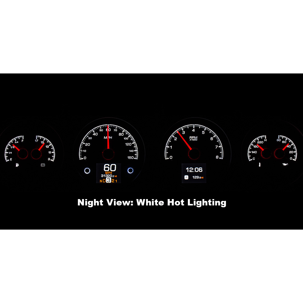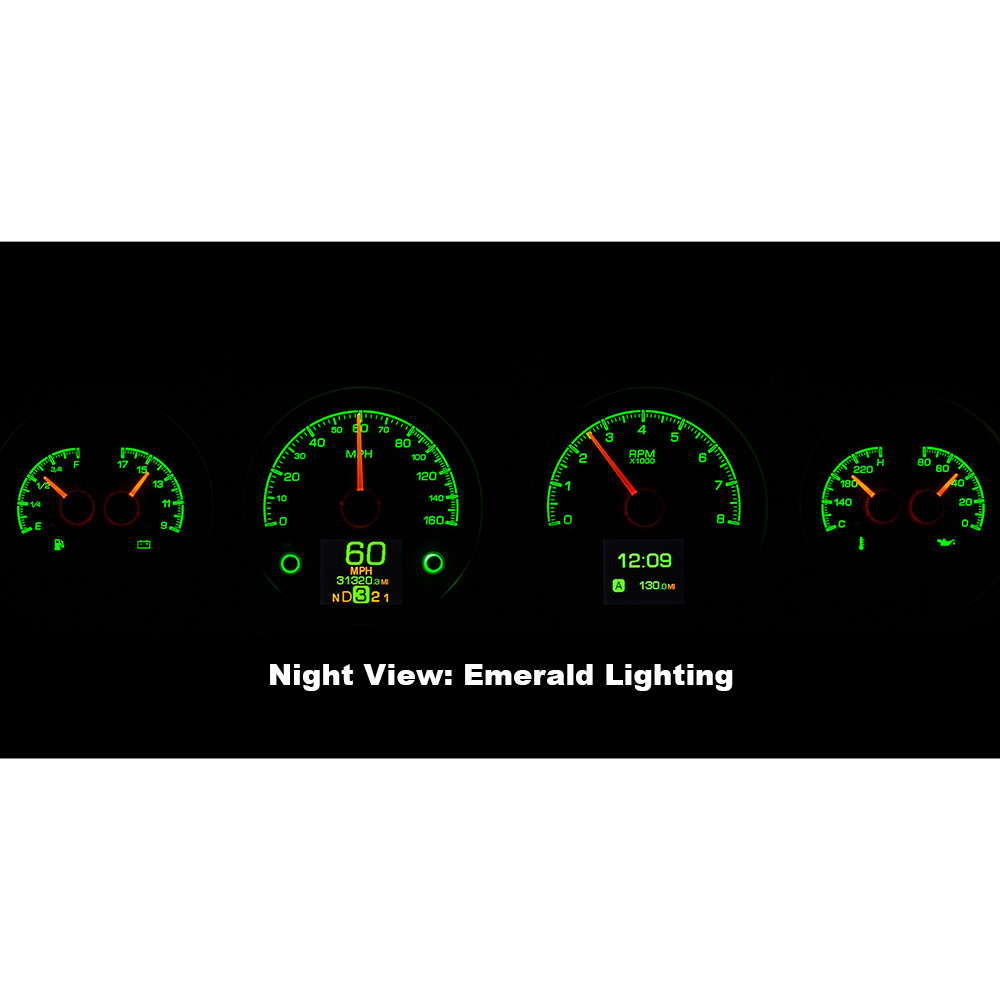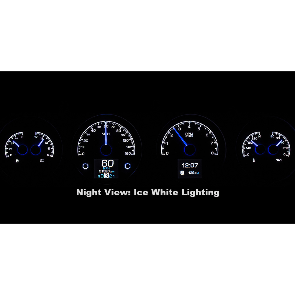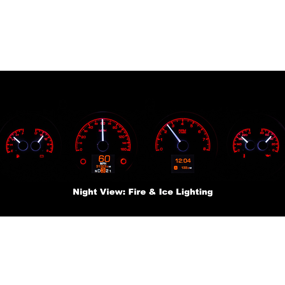 This Dakota Digital HDX gauge kit features two TFT message centers and six analog gauge sweeps will the quartet of openings, allowing the driver to view nearly any parameters desired. Order with your choice of black or silver face styling.