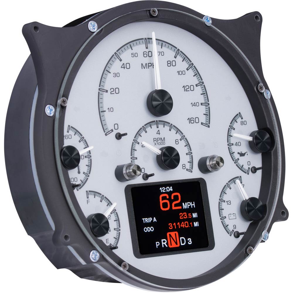 This Dakota Digital HDX gauge kit makes your Bronco gauges super user friendly. Six analog instruments join a 2.4” full-color TFT message center while retaining the stock trim ring. Integration with the drivetrain of your choice is easy.