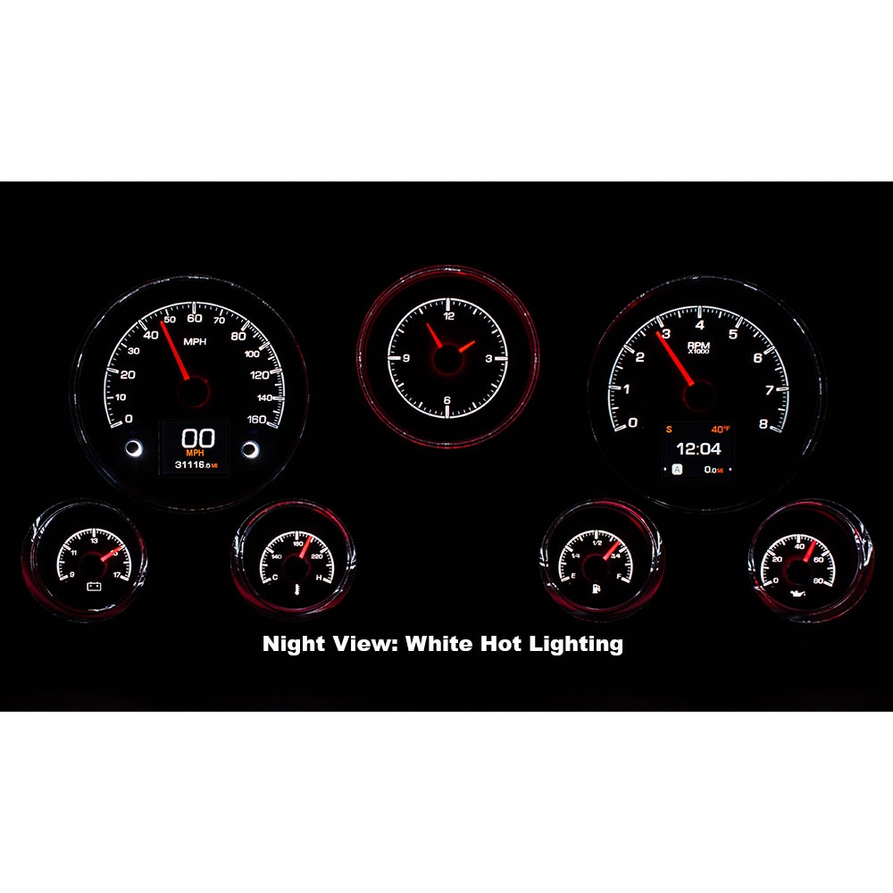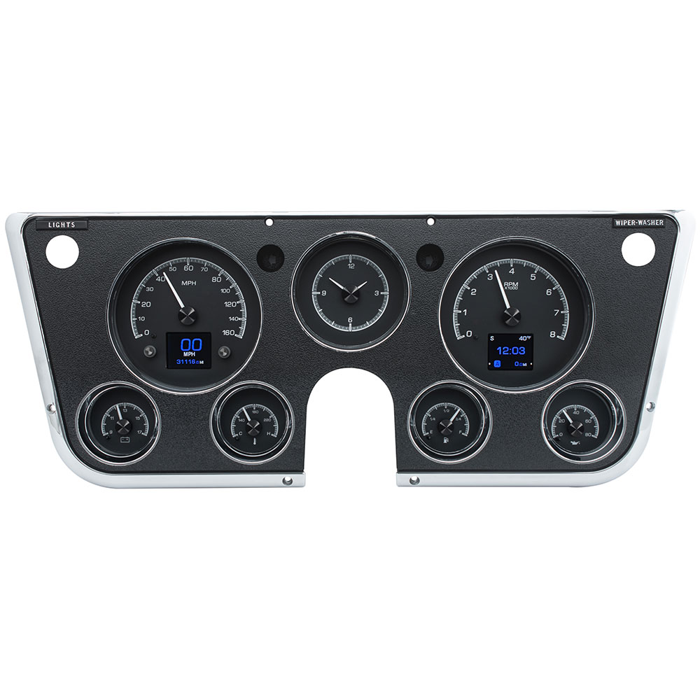 1967-72 GM pickups have been, and always will be one of the favorite classic trucks. The original seven-hole cluster offers plenty of room to provide you with a wealth of knowledge. Six analog gauges plus a clock and twin TFT message centers make use of the space, ensuring the driver is in the know. System fits stock or reproduction dash bezel, available separately.