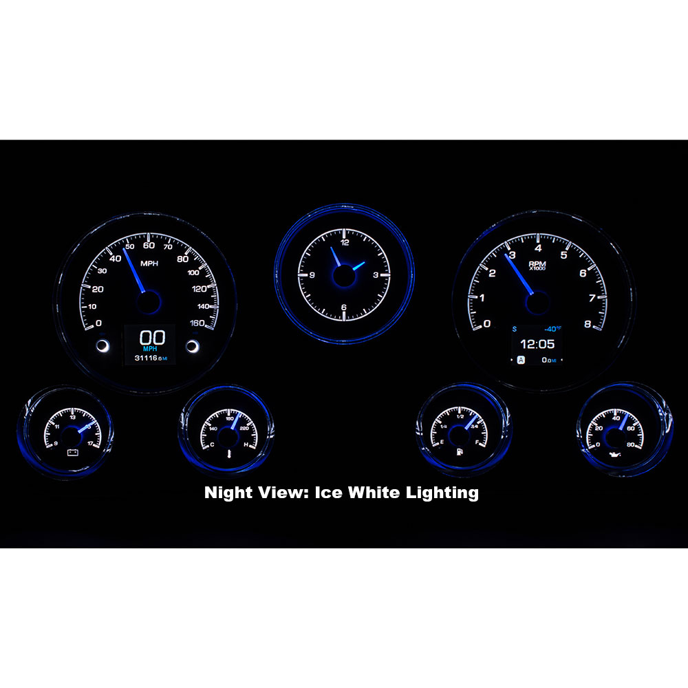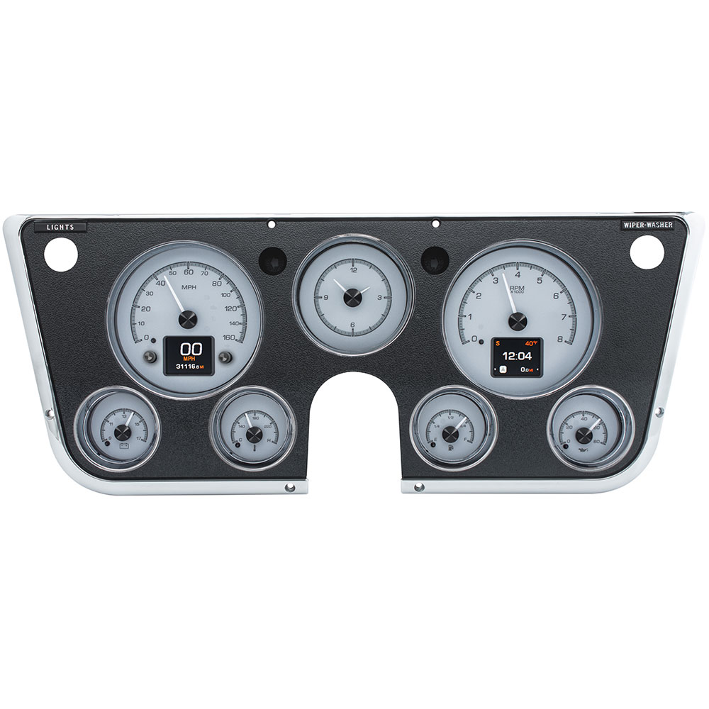 1967-72 GM pickups have been, and always will be one of the favorite classic trucks. The original seven-hole cluster offers plenty of room to provide you with a wealth of knowledge. Six analog gauges plus a clock and twin TFT message centers make use of the space, ensuring the driver is in the know. System fits stock or reproduction dash bezel, available separately.