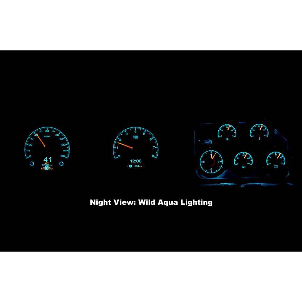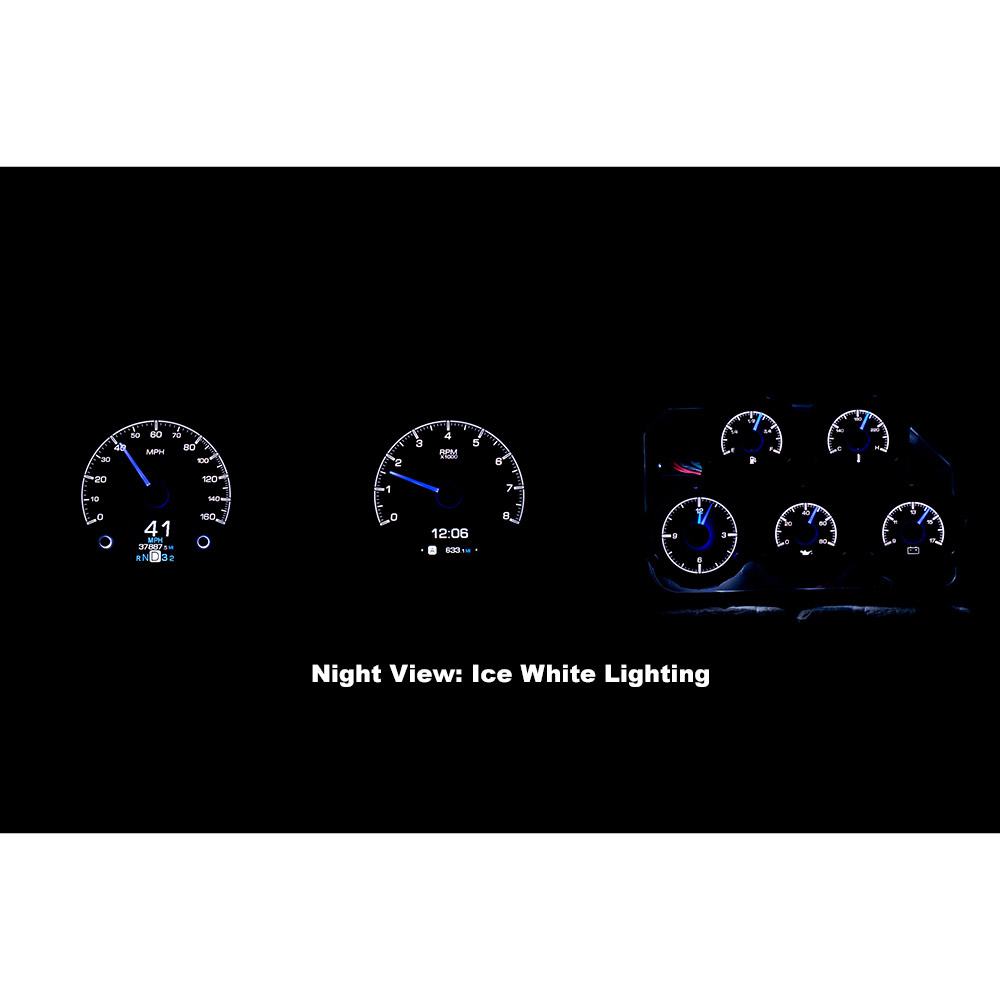 This Dakota Digital gauge kit is available with your choice of black or silver alloy gauge-face styling, each HDX system allows the user to select independent illumination colors for the gauge readings and needles, as well as the message centers. Calibration and personal settings are manipulated with the built-in, capacitive-touch buttons, or the available Bluetooth app for Apple and Android devices. Each needle hub is black nickel plated spun-aluminum to match the buttons. All HDX instrument systems feature dead-faced indicators (turn signals, high beam, check engine, cruise control, parking brake, plus two user-definable), and a red, settable warning light for each gauge.