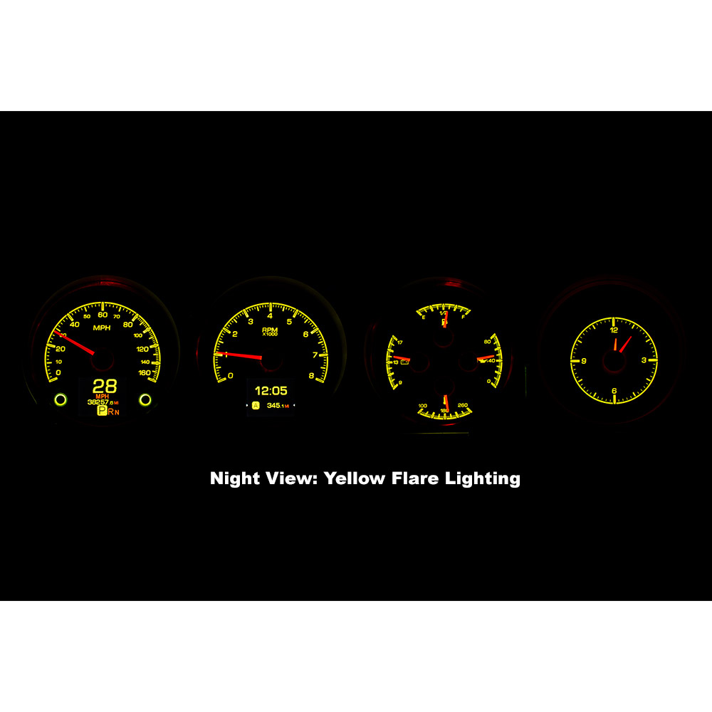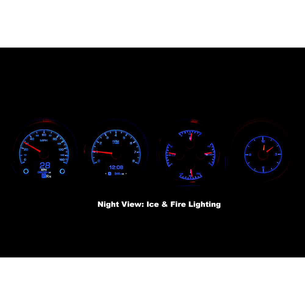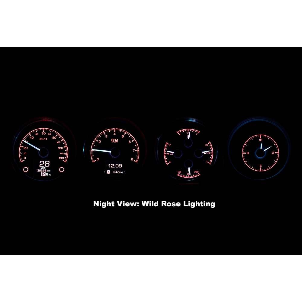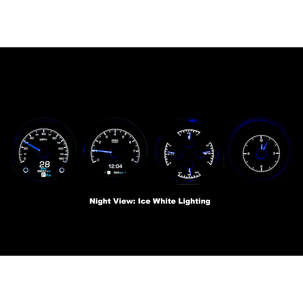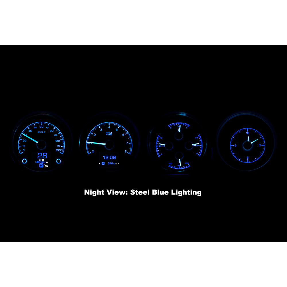 Available with your choice of black or silver alloy gauge-face styling, each HDX system allows the user to select independent illumination colors for the gauge readings and needles, as well as the message centers. Calibration and personal settings are manipulated with the built-in, capacitive-touch buttons, or the available Bluetooth app for Apple and Android devices. Each needle hub is black nickel plated spun-aluminum to match the buttons. All HDX instrument systems feature dead-faced indicators (turn signals, high beam, check engine, cruise control, parking brake, plus two user-definable), and a red, settable warning light for each gauge.